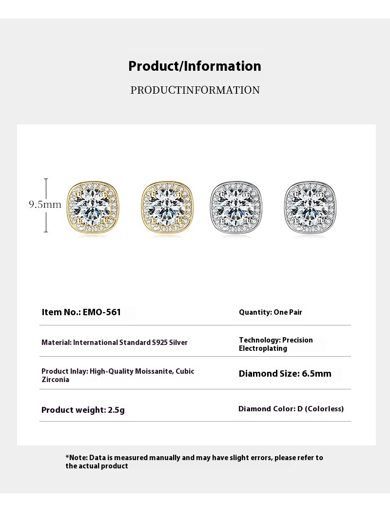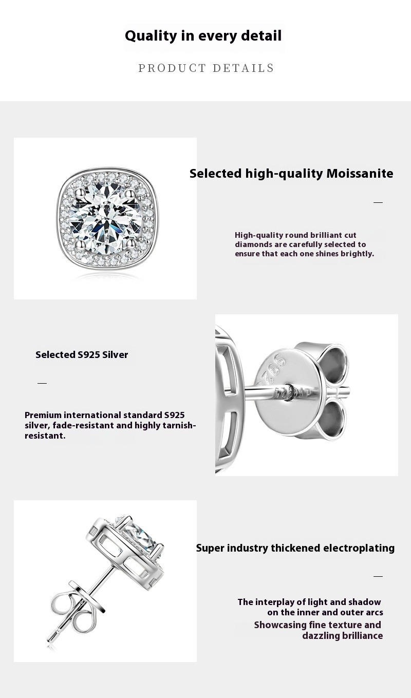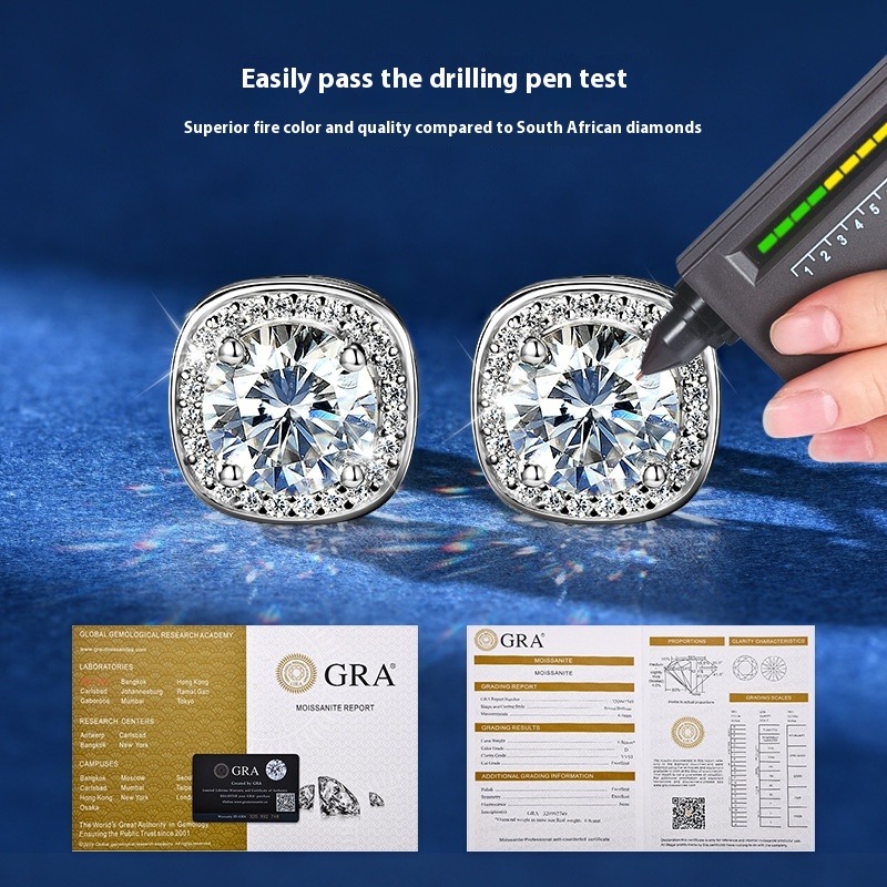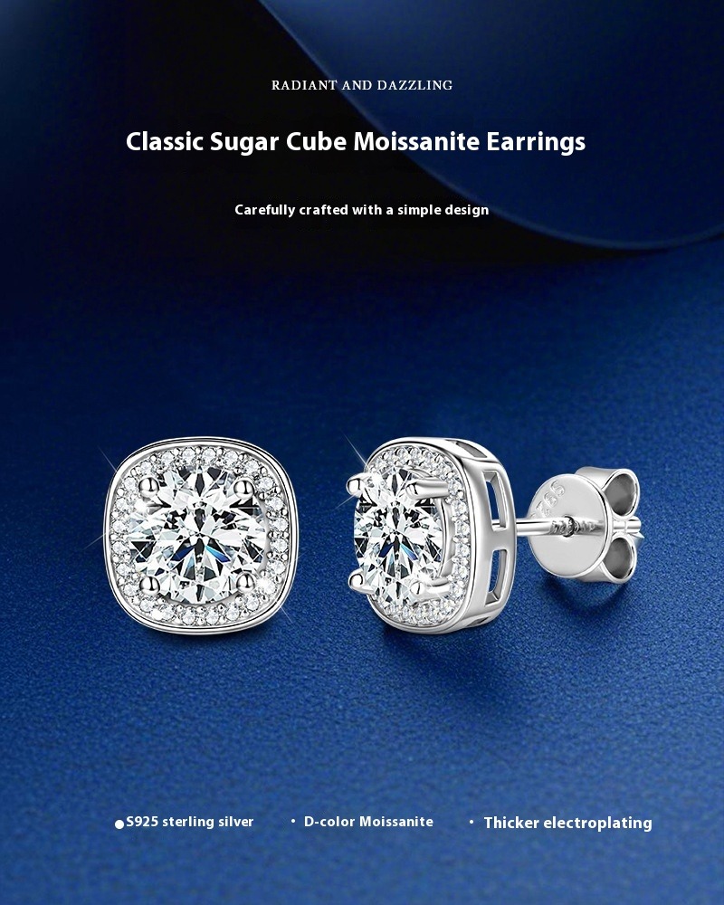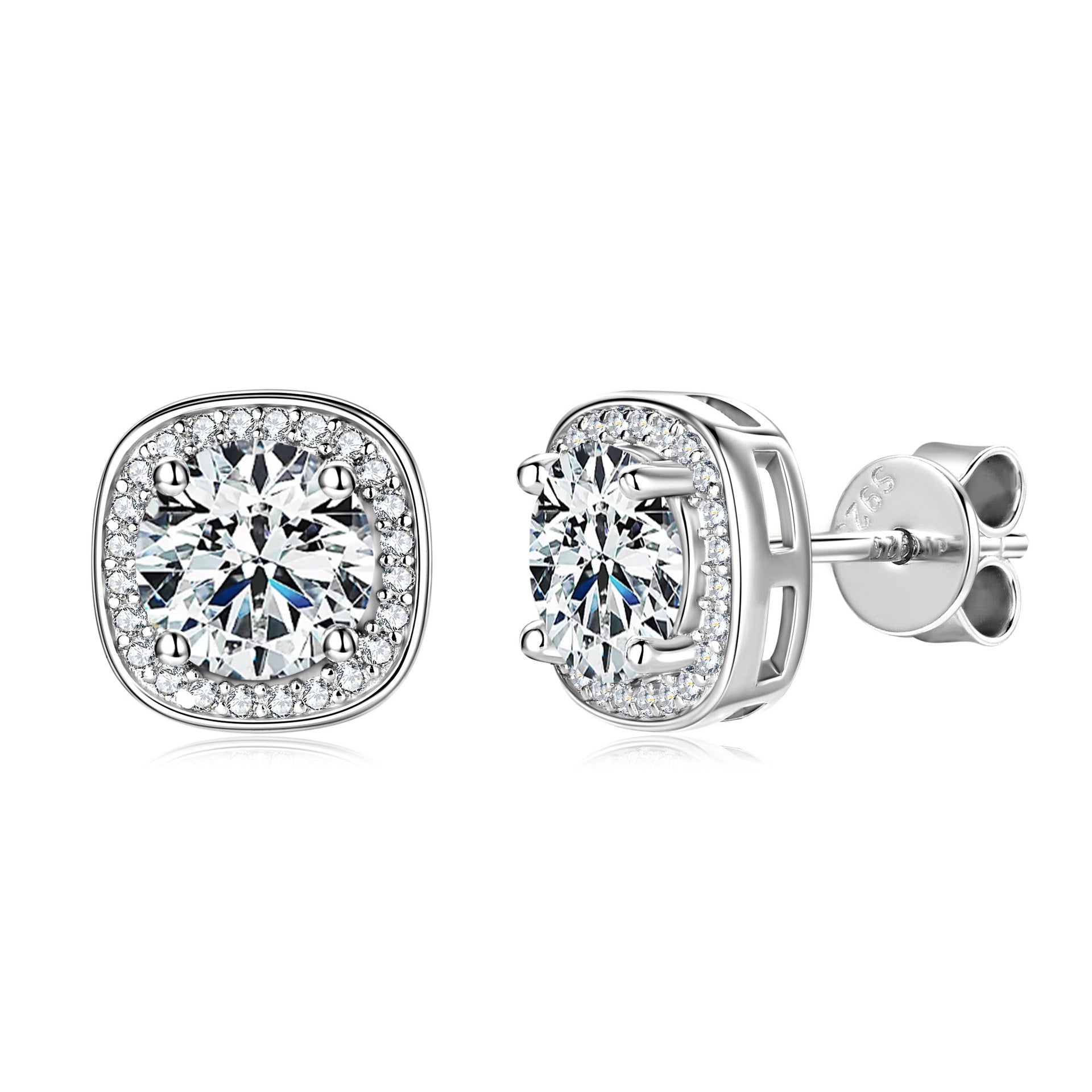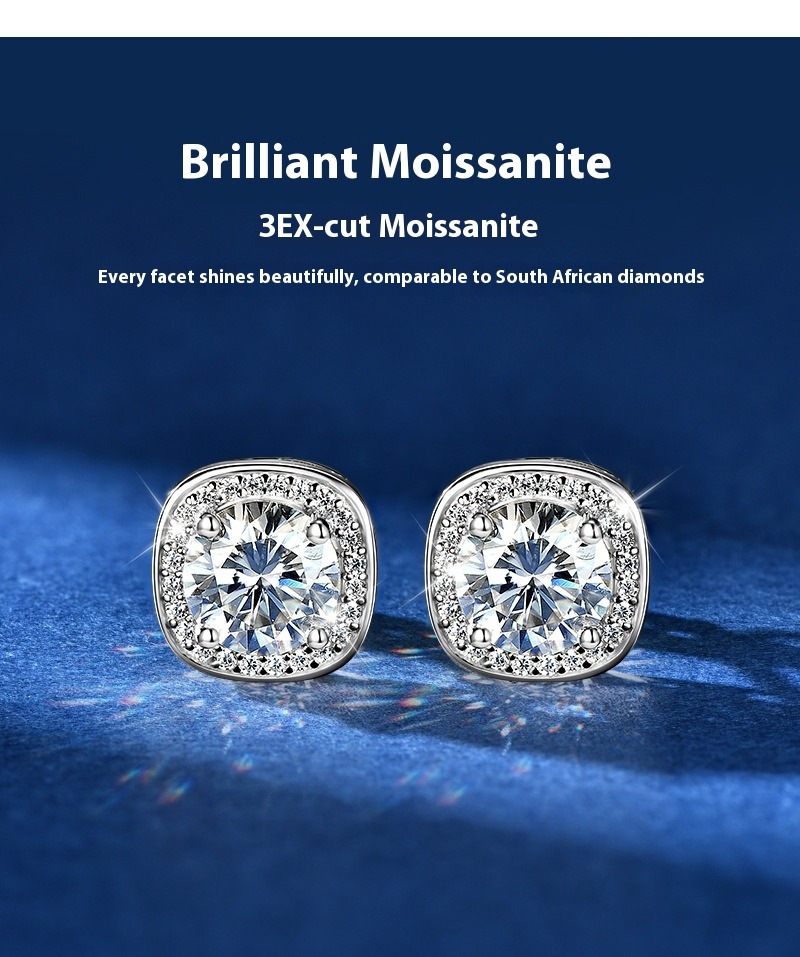 S925 Sterling Silver 1 Carat Moissanite Stud Earrings - Classic Four-Prong Setting