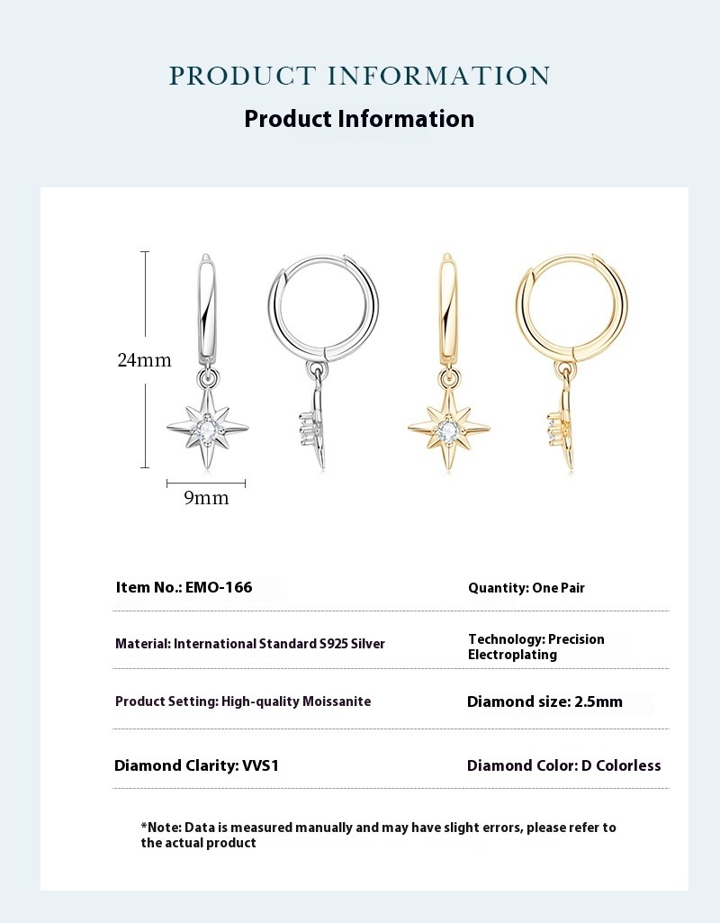 S925 Sterling Silver 18K Gold Plated Hexagram Gypsy Earrings - Bohemian Style