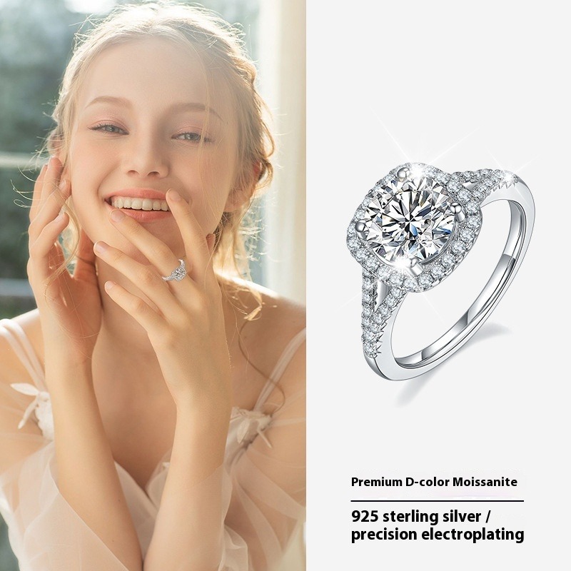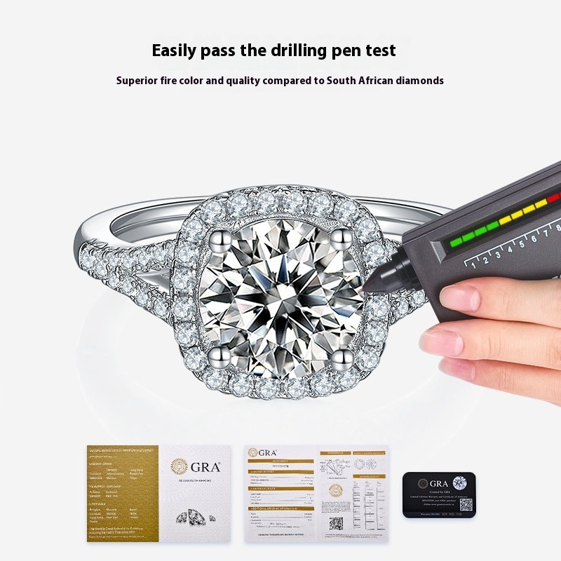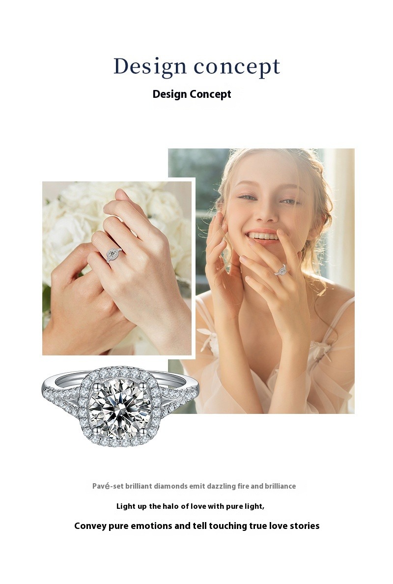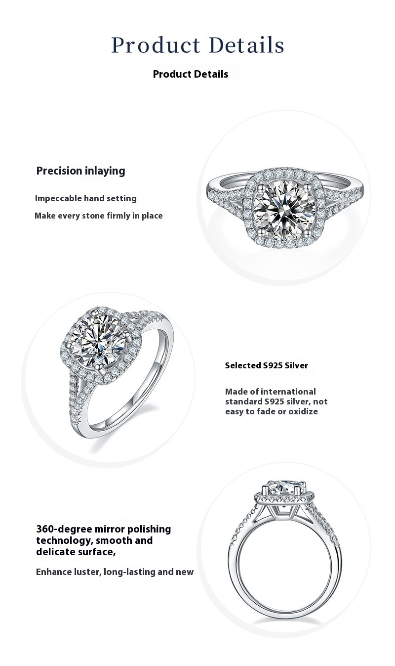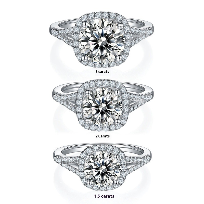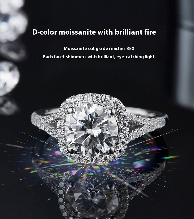 S925 Sterling Silver 18K Gold Plated Square Moissanite Ring - Double Band Design