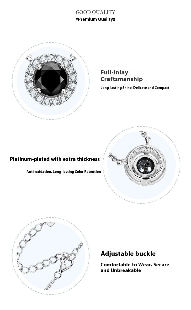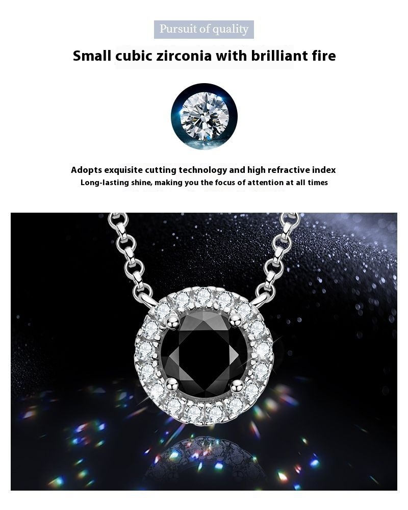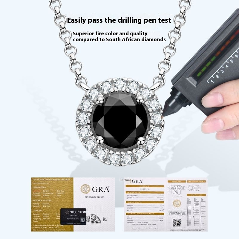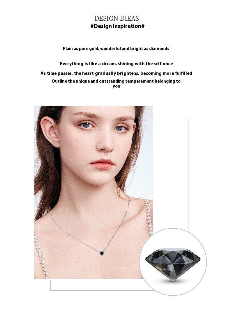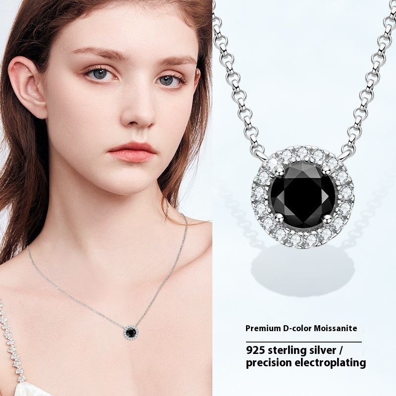 S925 Sterling Silver Black Moissanite Collarbone Necklace - Sophisticated Pendant