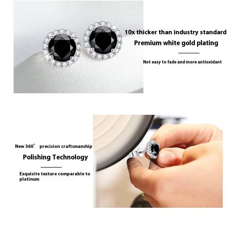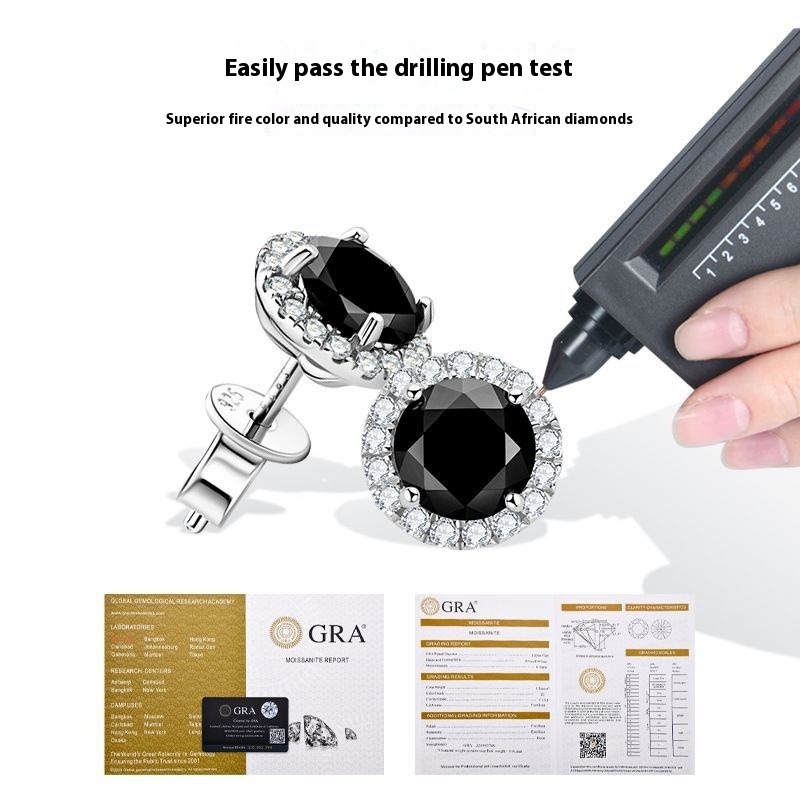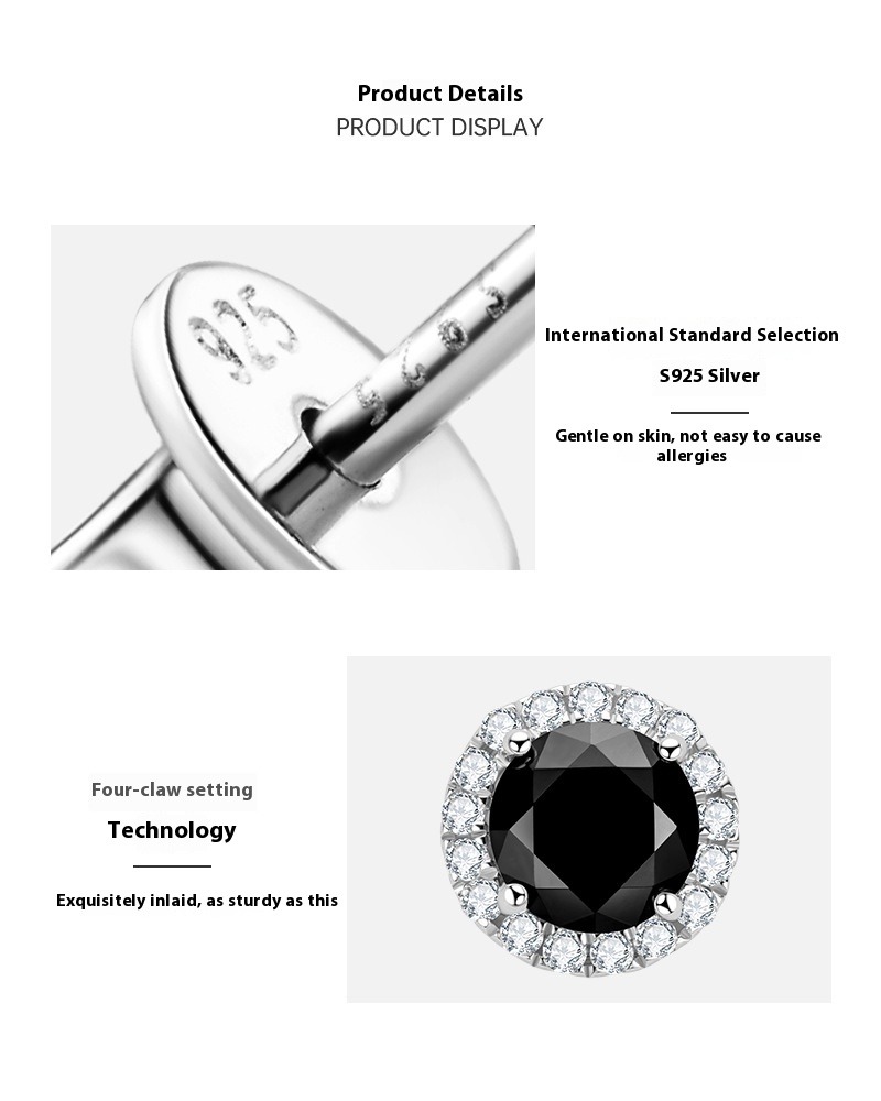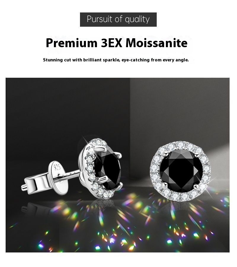 S925 Sterling Silver Black Moissanite Stud Earrings - Sophisticated Fashion Statement