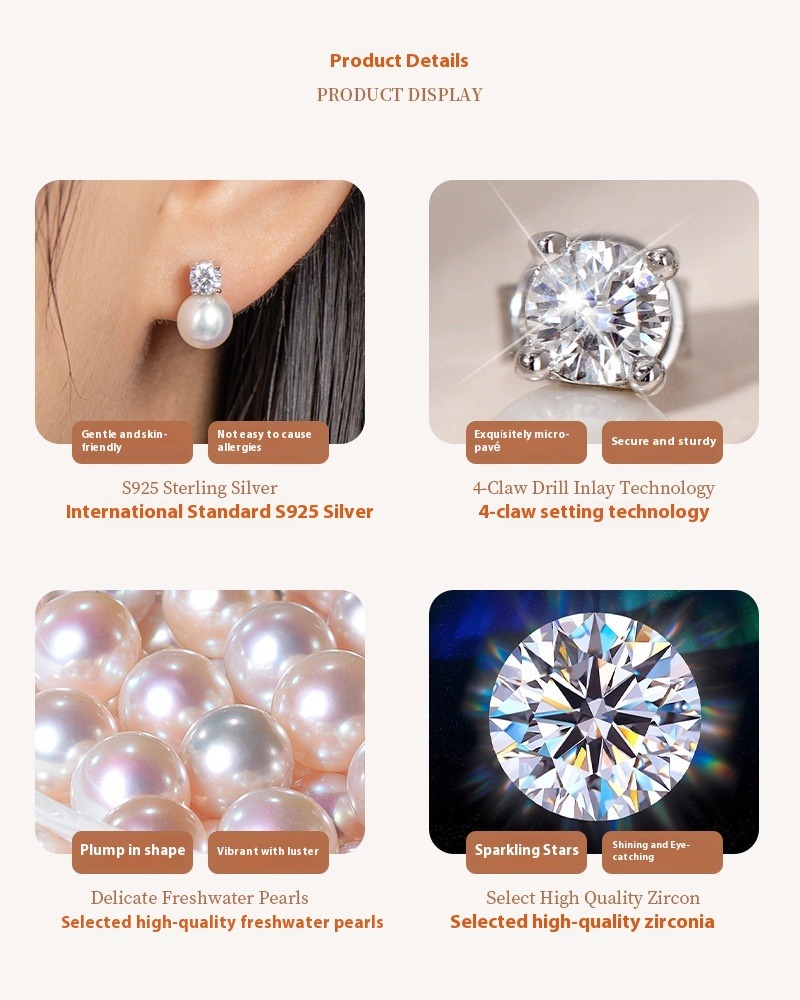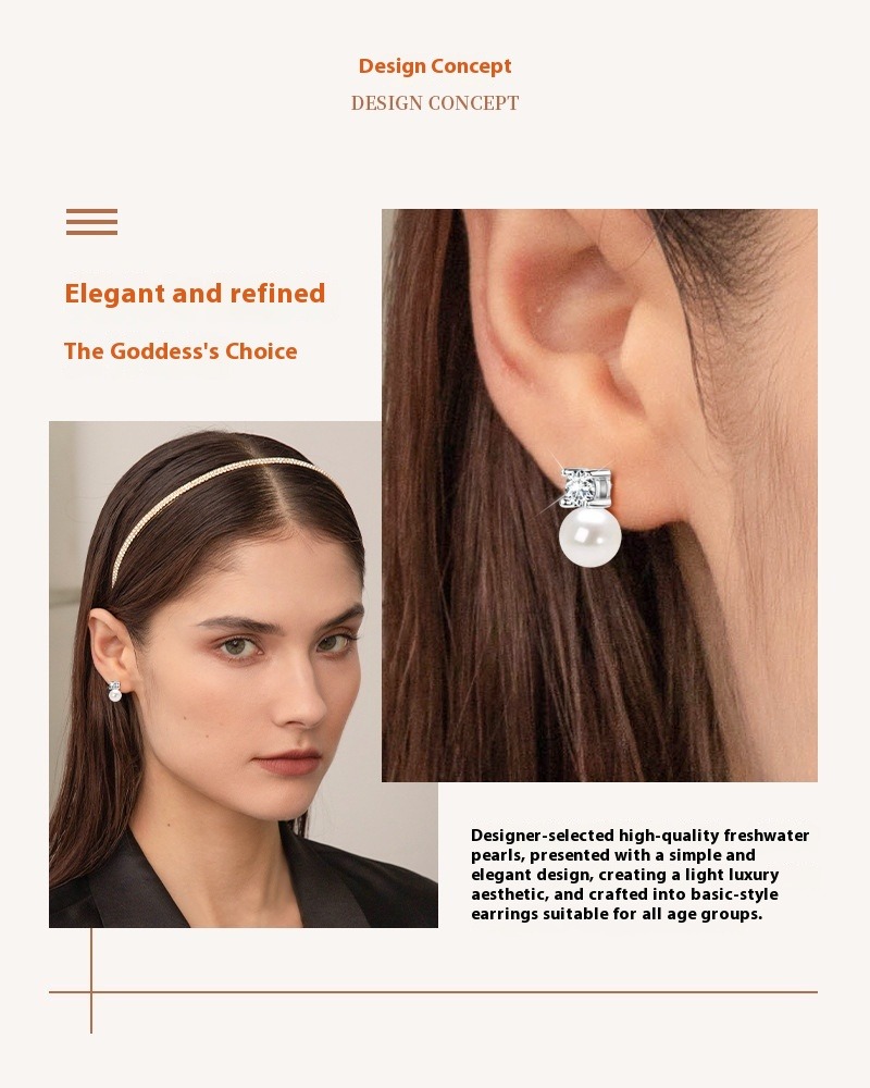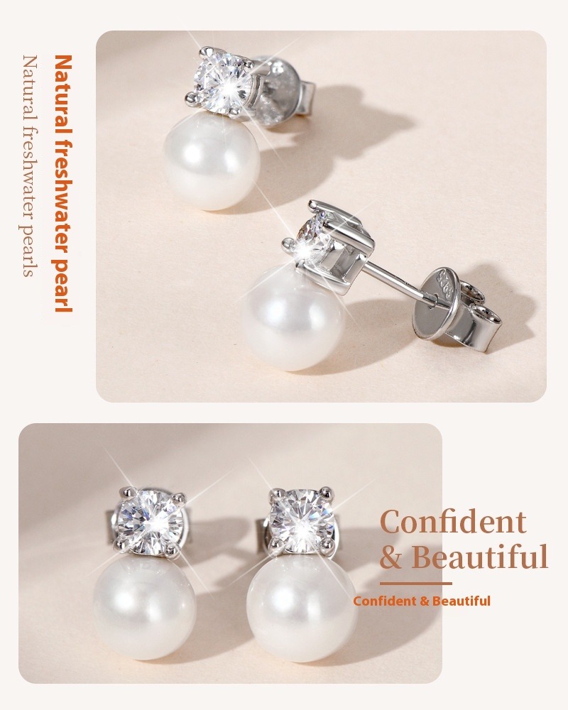 S925 Sterling Silver Classic Freshwater Pearl Stud Earrings - Round Design