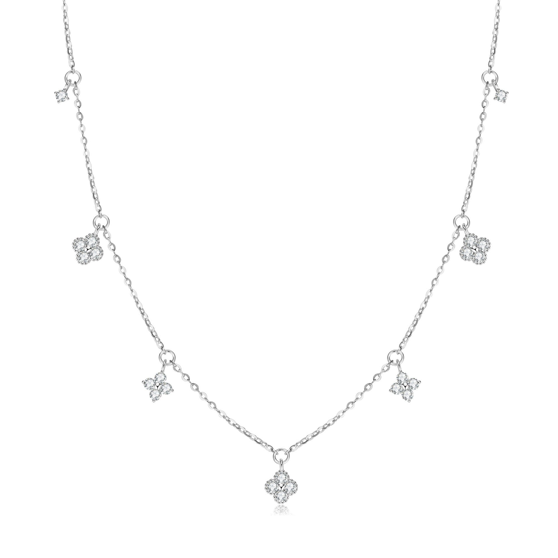 S925 Sterling Silver Four-Leaf Clover Moissanite Necklace - Lucky Charm Delicate Chain