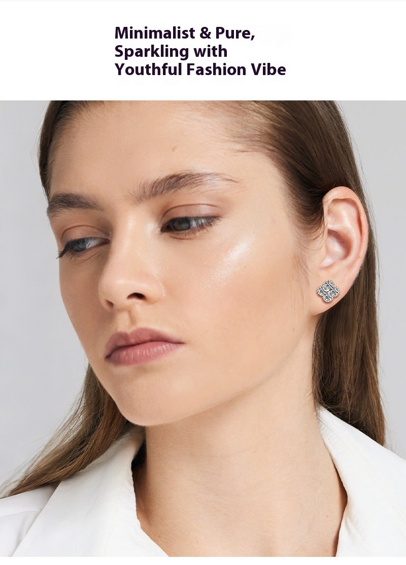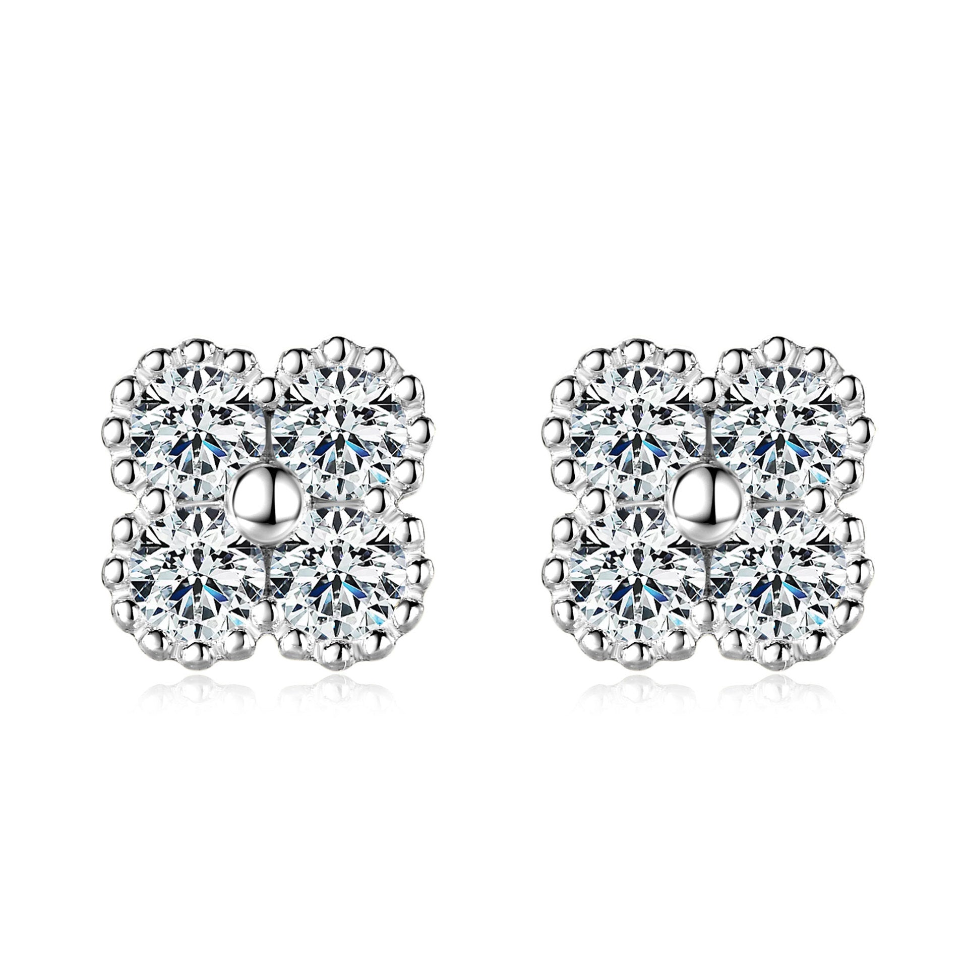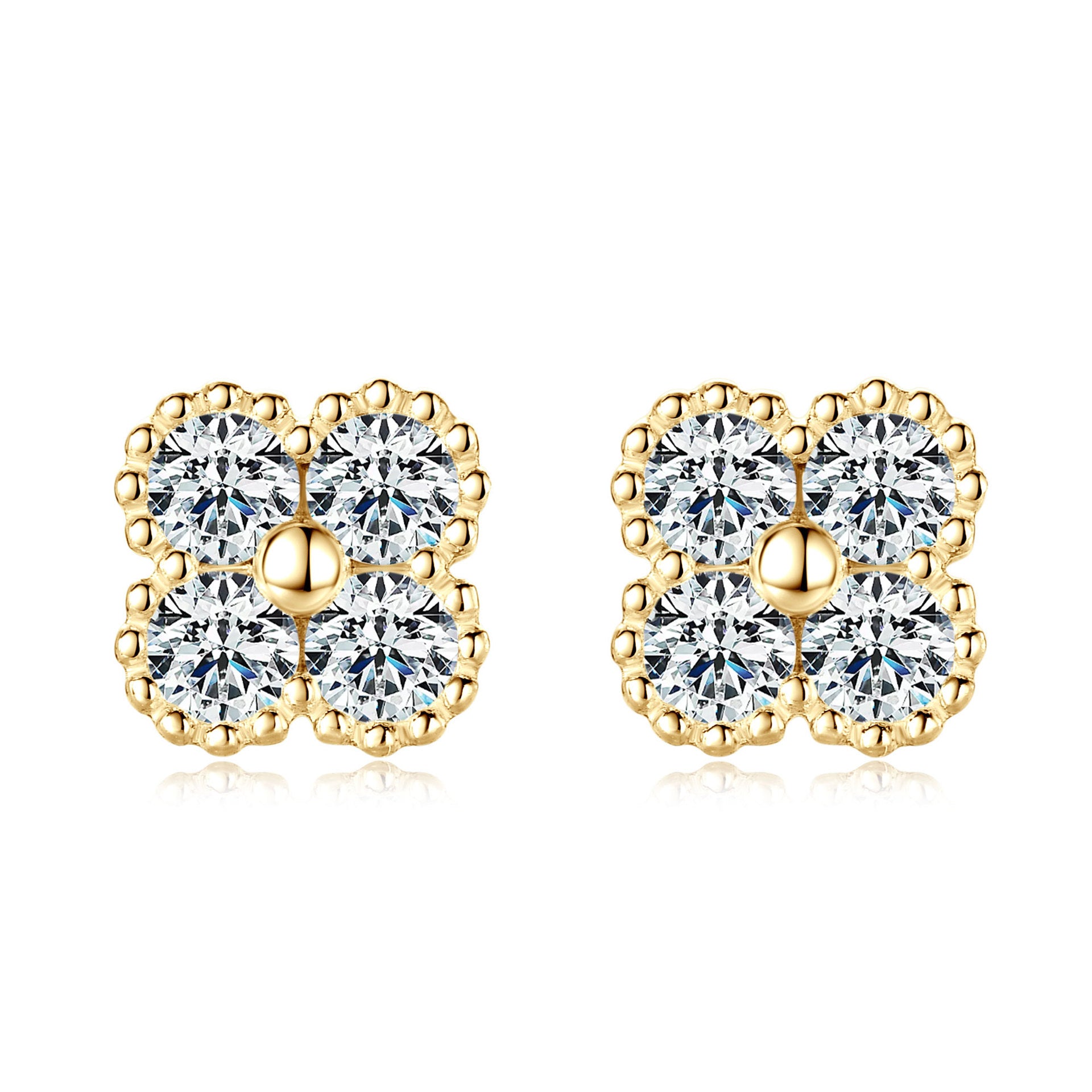 S925 Sterling Silver Four Leaf Clover Moissanite Stud Earrings - Lucky Charm Pavé Flower