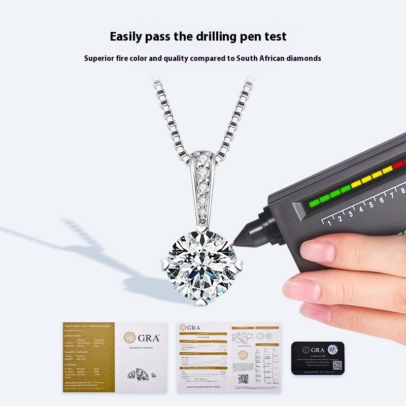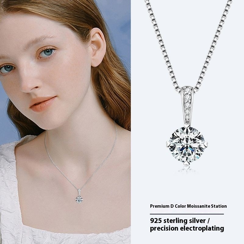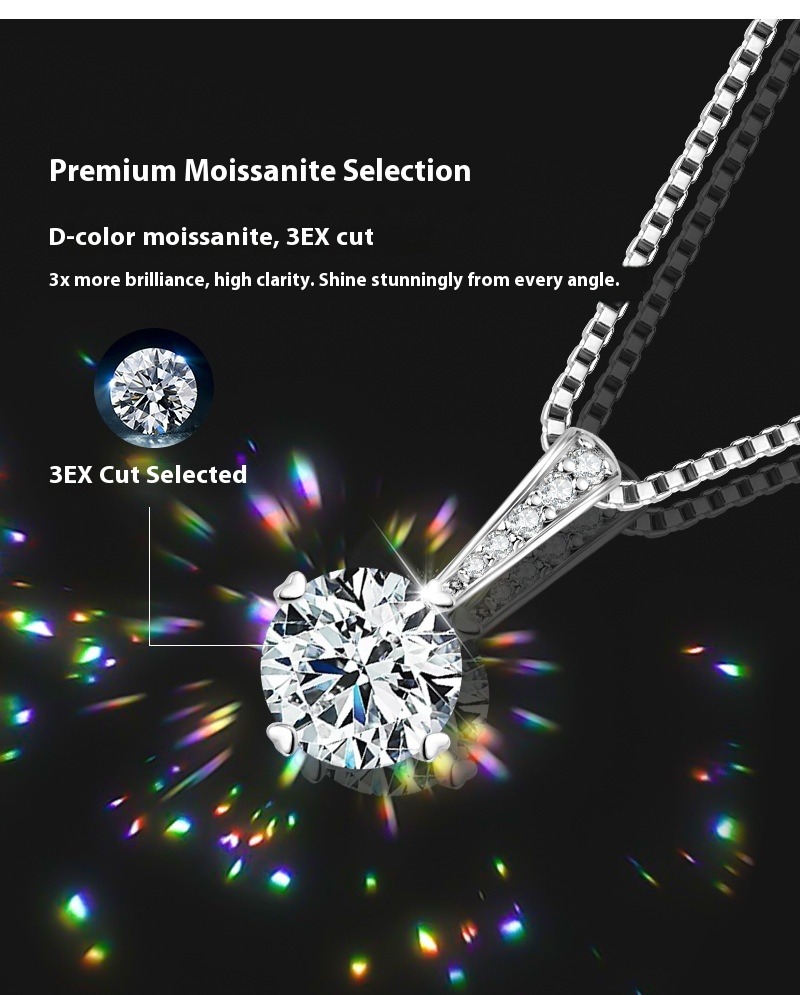 S925 Sterling Silver Four Prong Moissanite Necklace - 18K Gold Plated Pendant