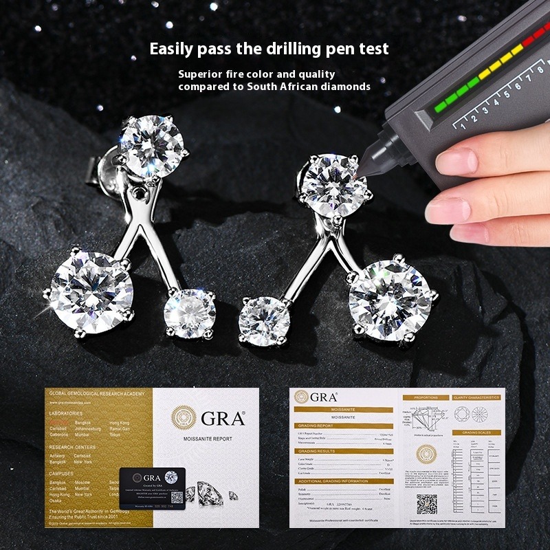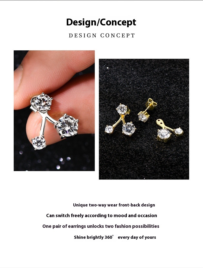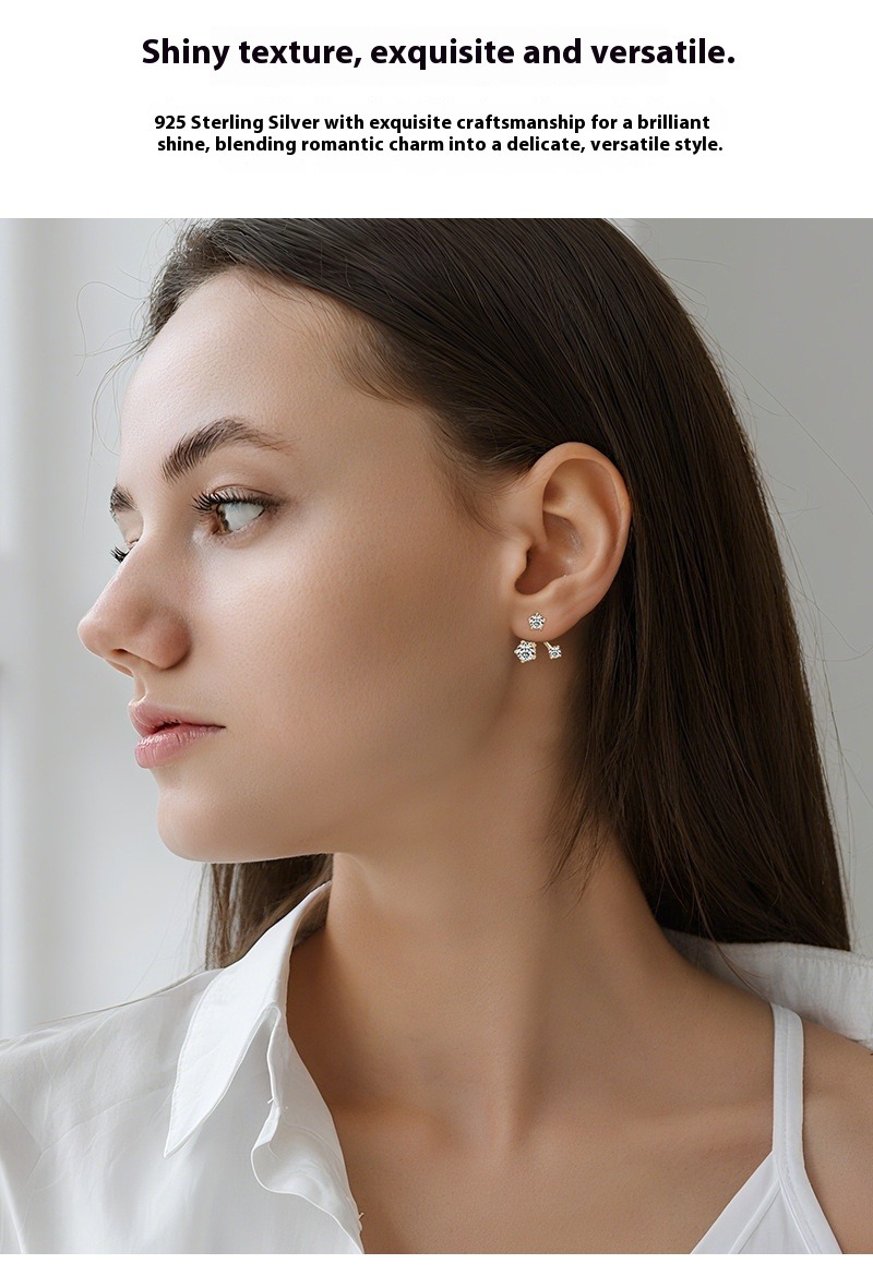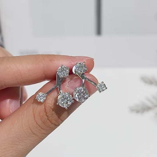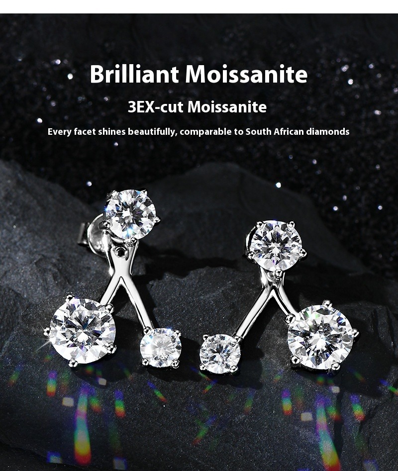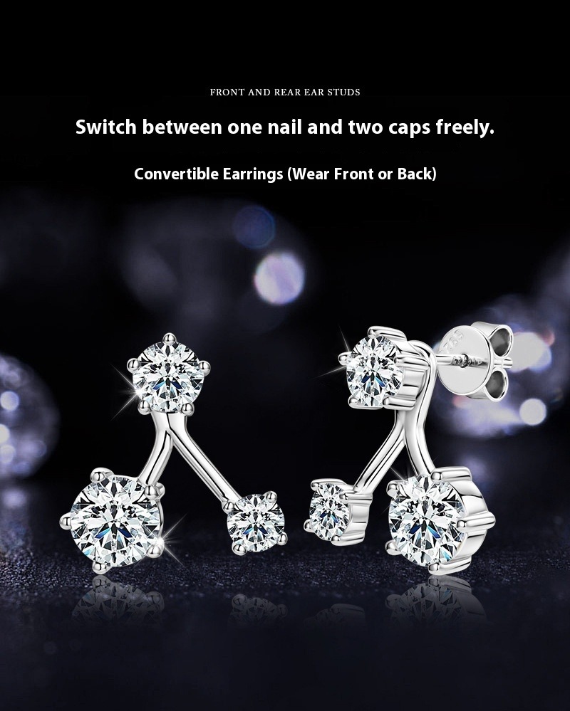 S925 Sterling Silver Front Back Moissanite Stud Earrings - Double Wear Design