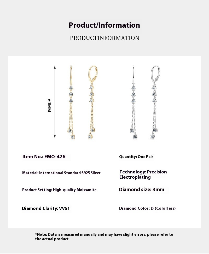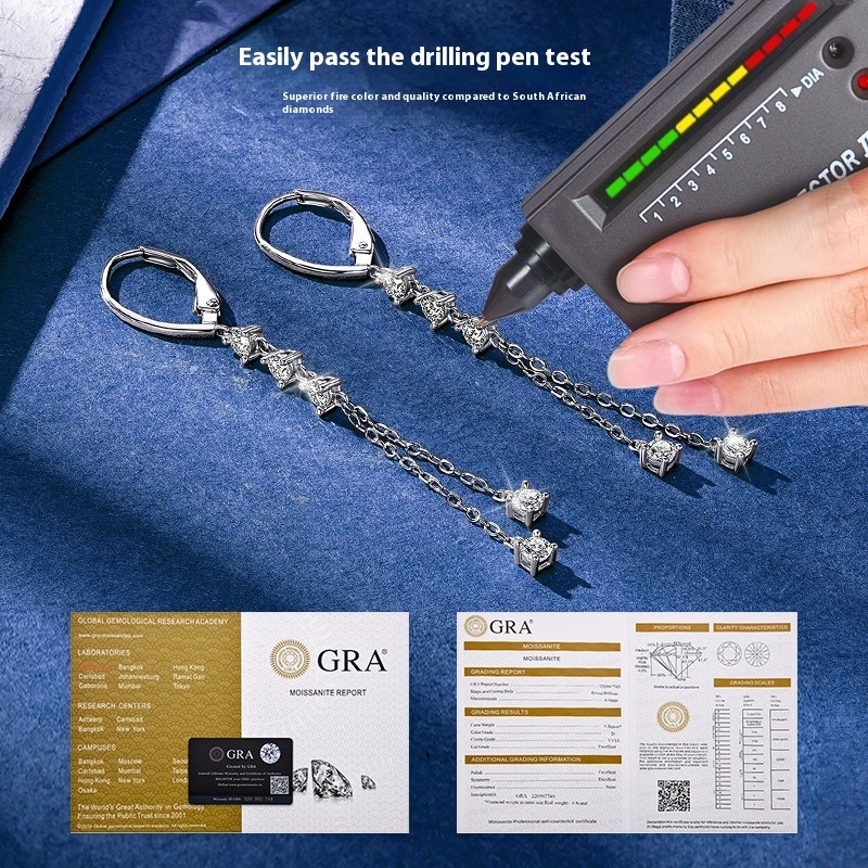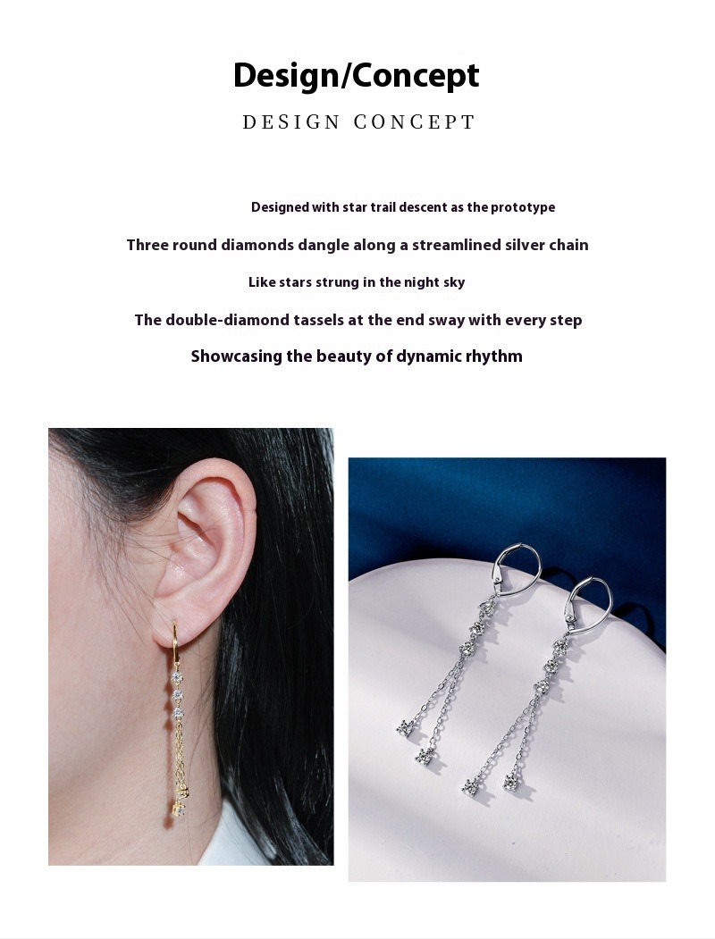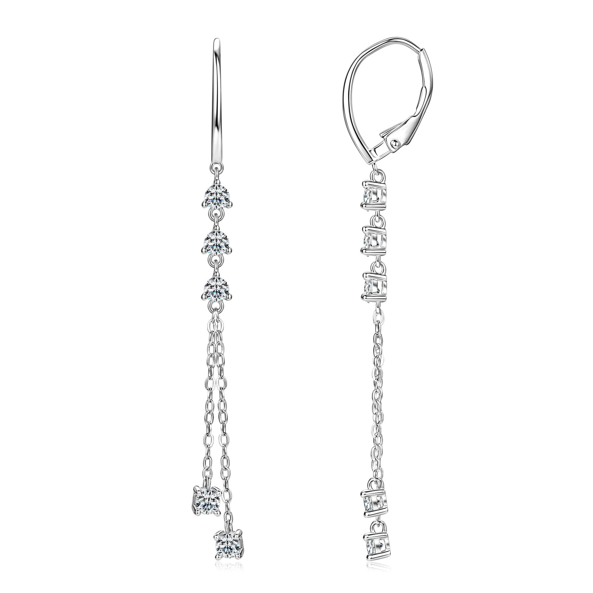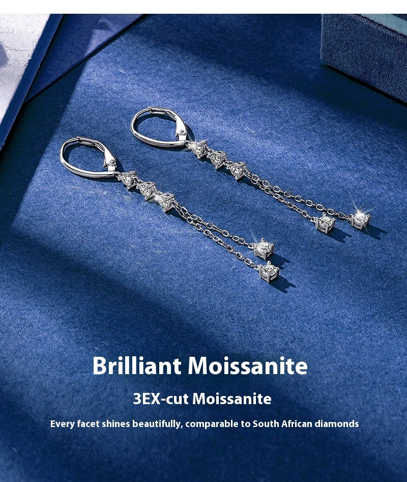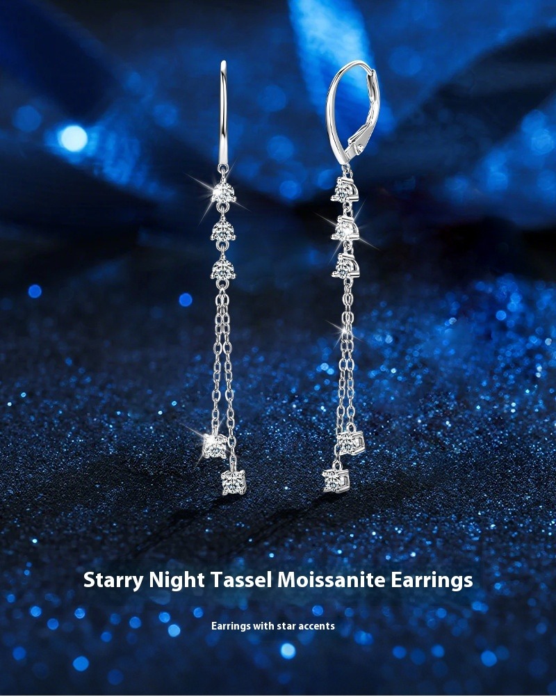 S925 Sterling Silver Long Fringe Moissanite Earrings - Luxury Drop Style