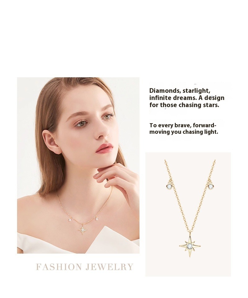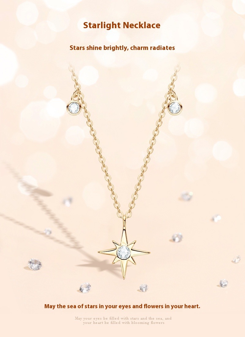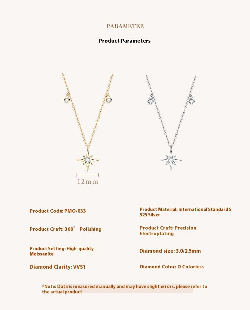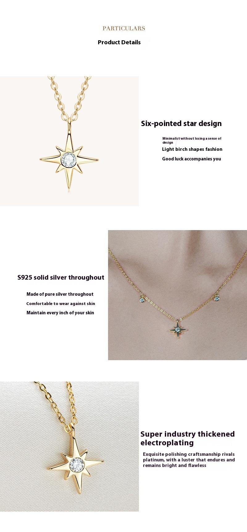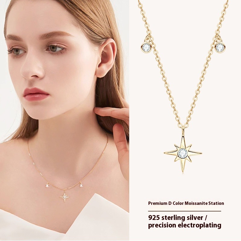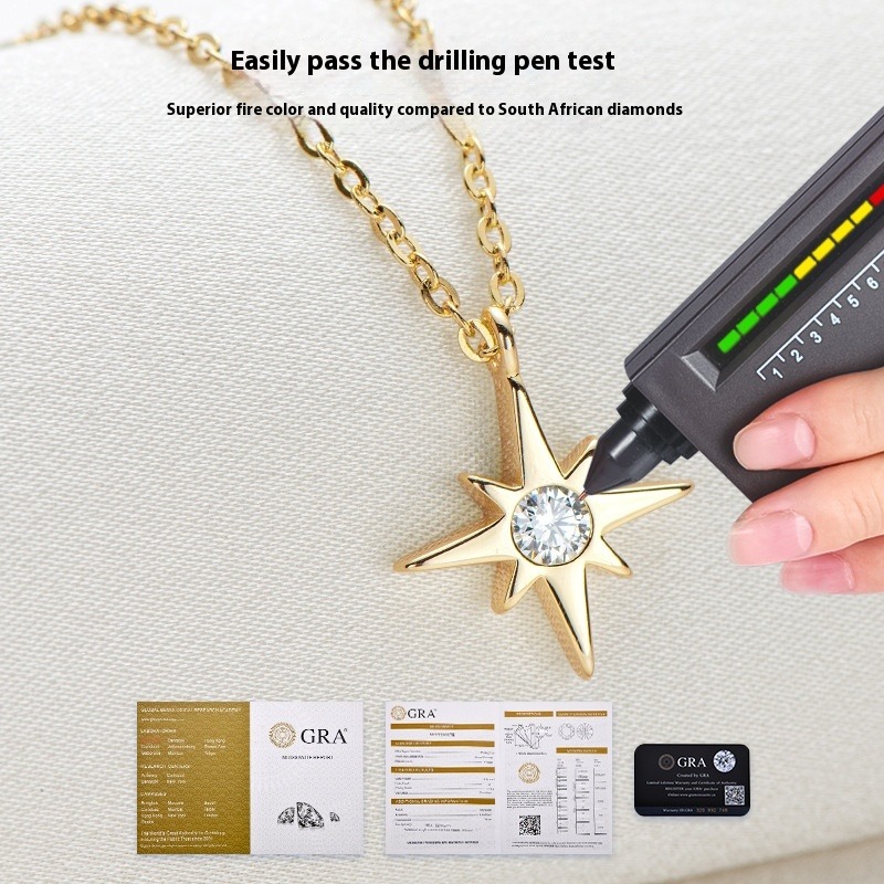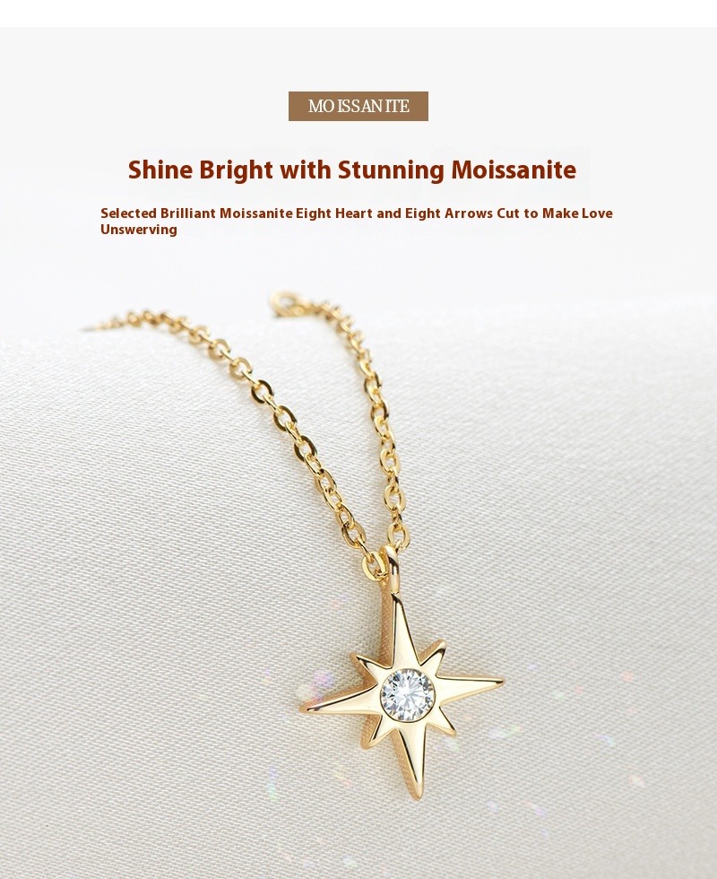 S925 Sterling Silver Moissanite Hexagram Star Necklace - Six-Point Star Collarbone Chain