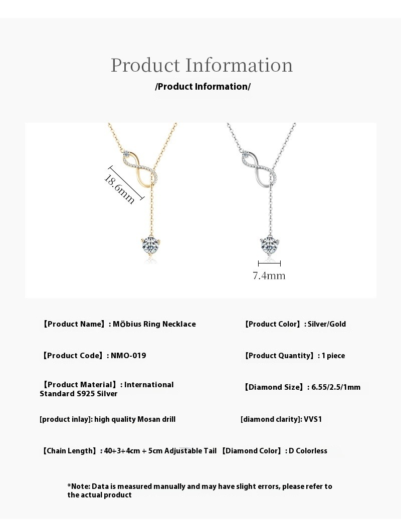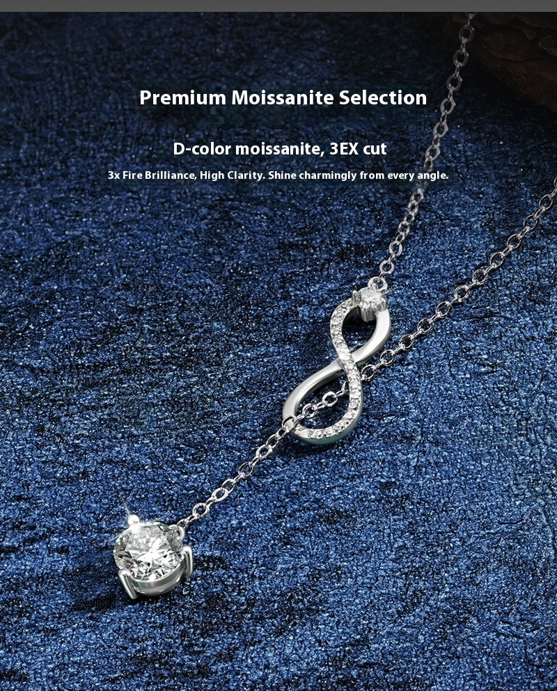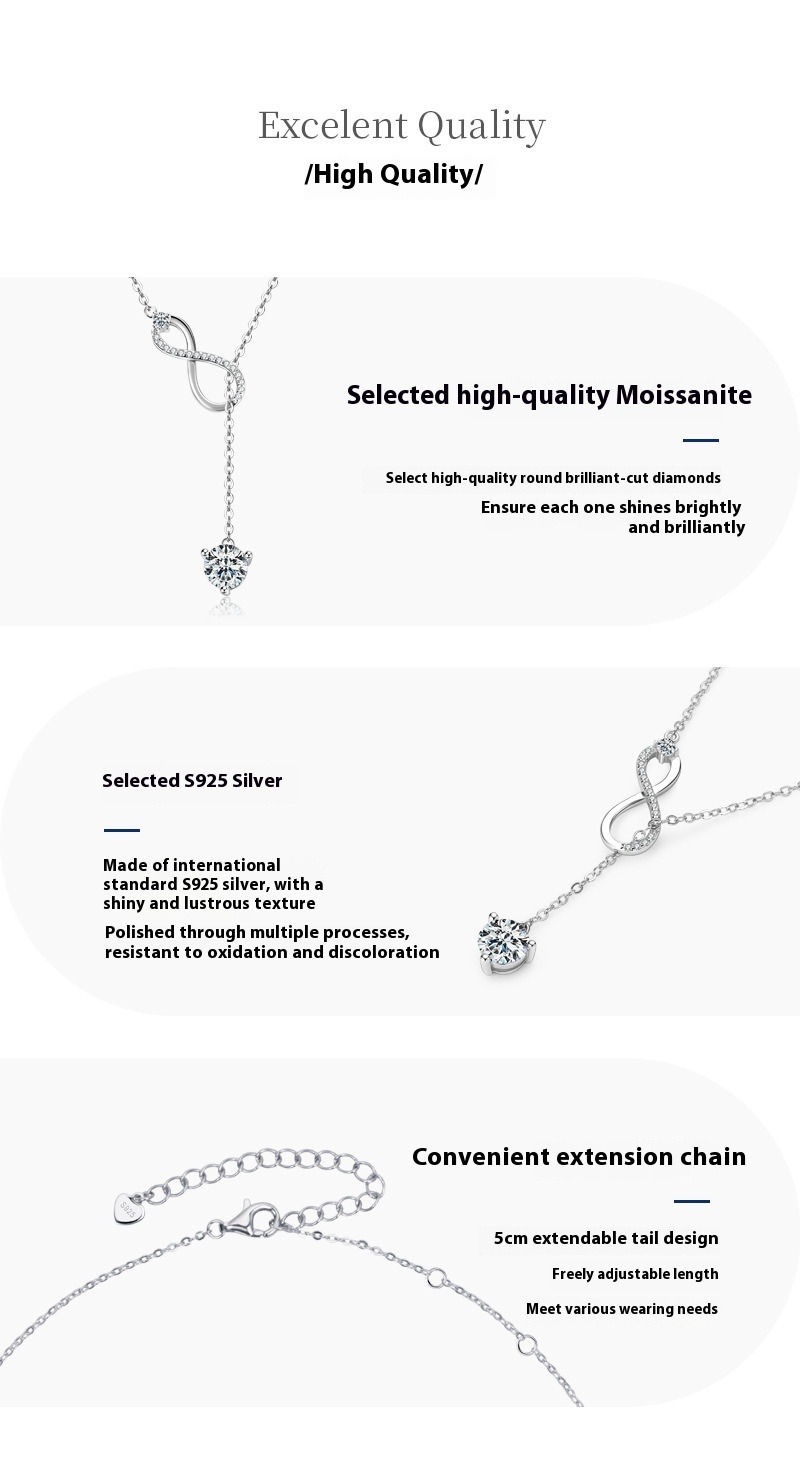 S925 Sterling Silver Moissanite Infinity Tassel Necklace - Symbolic Pendant Jewelry