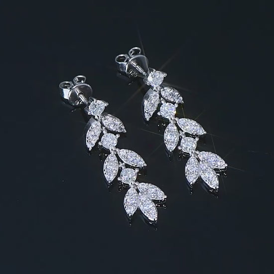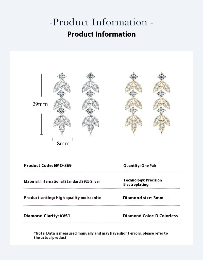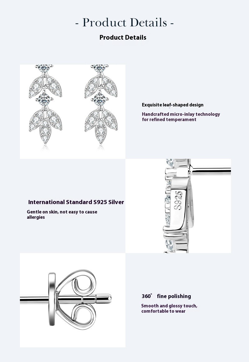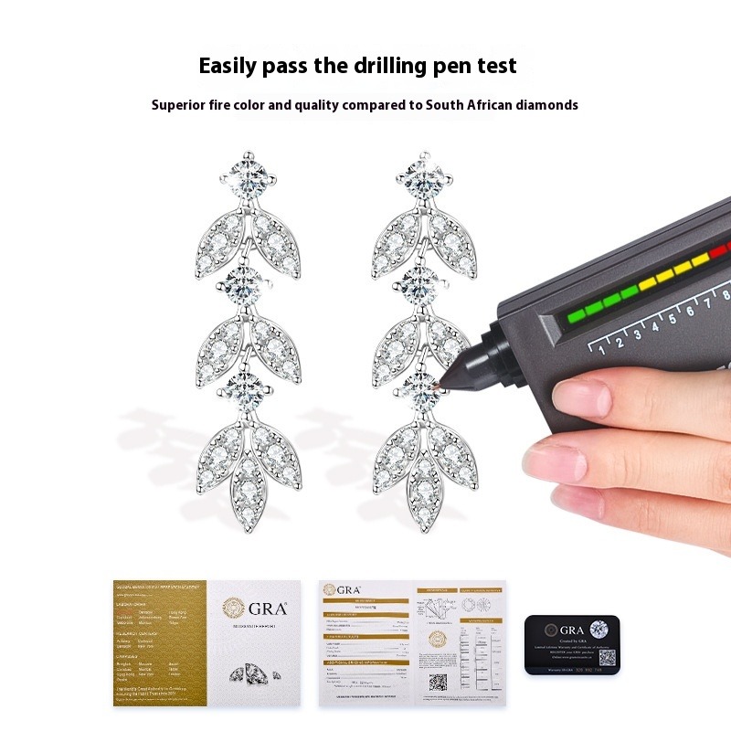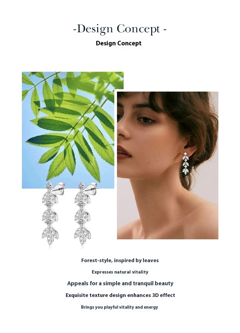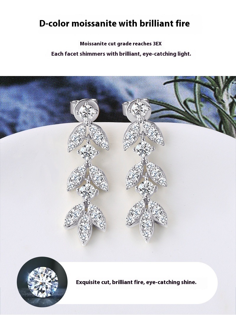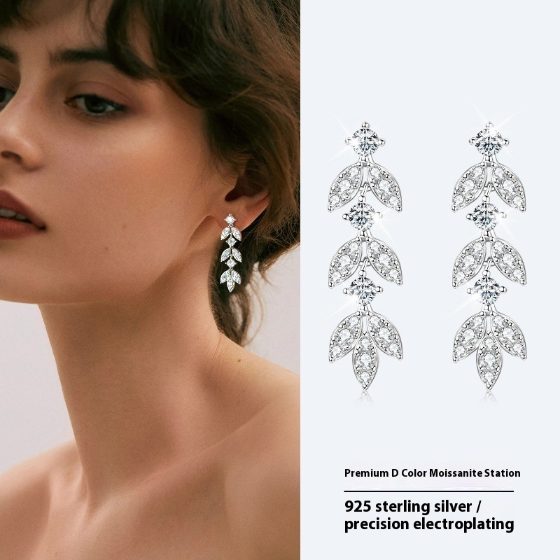 S925 Sterling Silver Moissanite Leaf Tassel Drop Earrings - Nature-Inspired Luxury