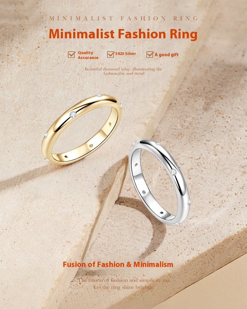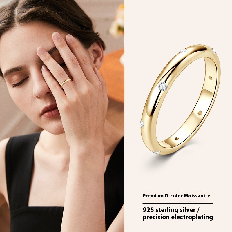 S925 Sterling Silver Moissanite Stackable Ring - Minimalist Layering Band