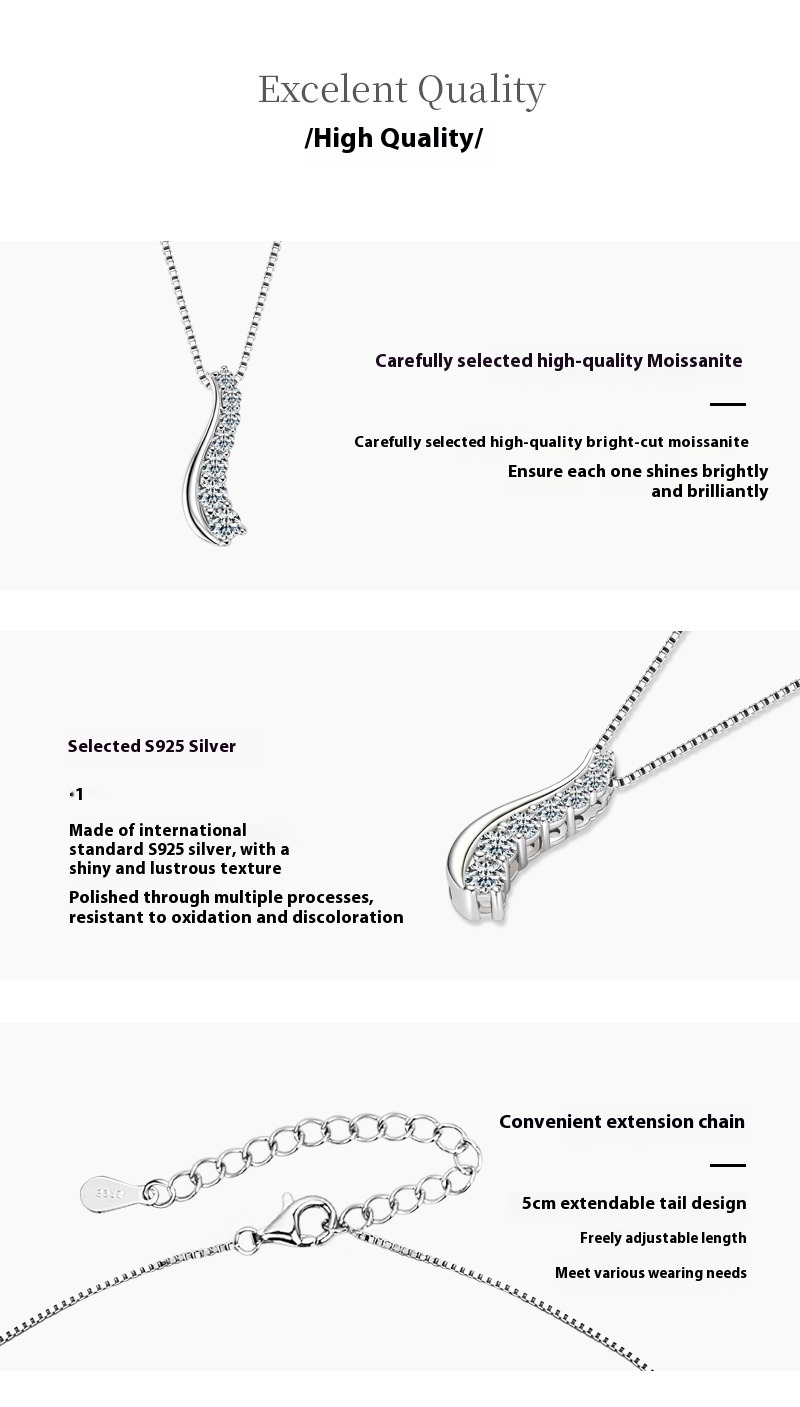 S925 Sterling Silver S-Shaped Waist Necklace - Moissanite Pendant Chain