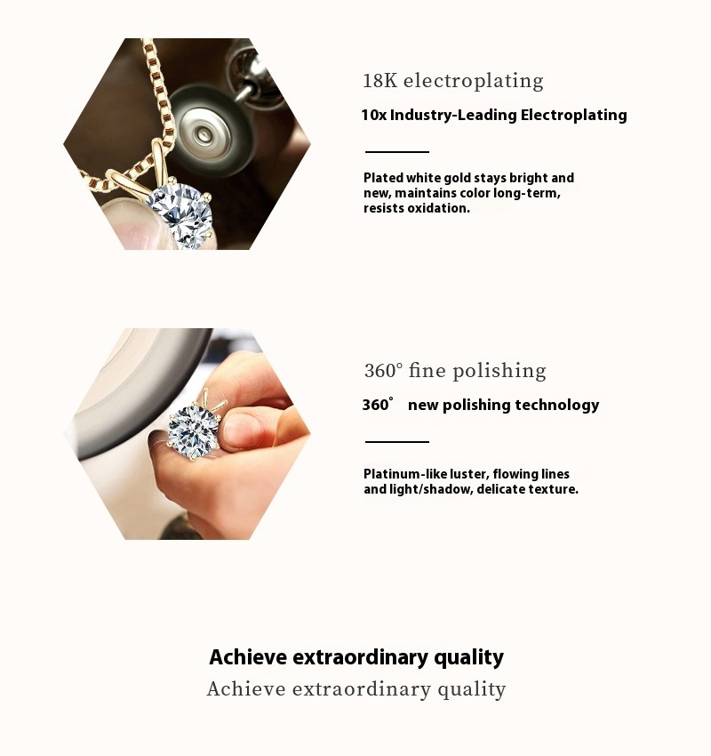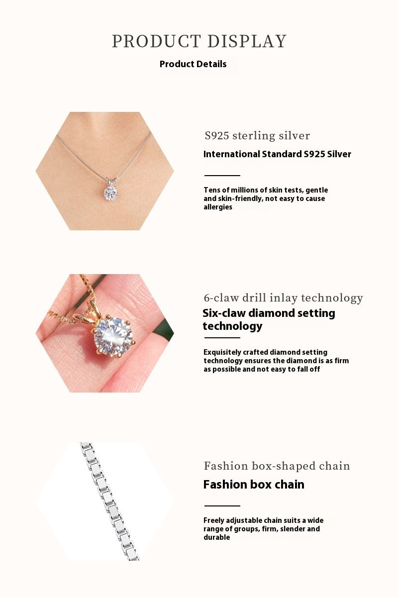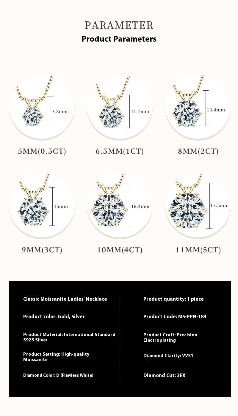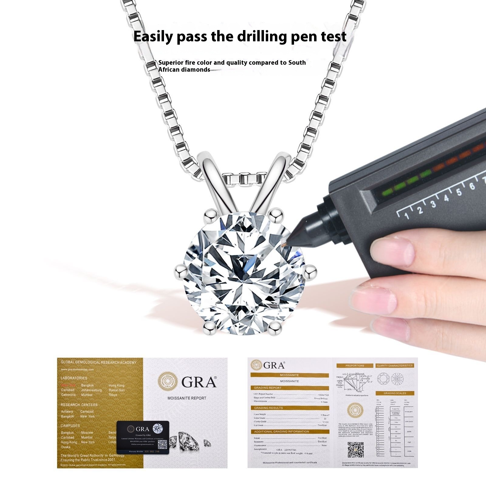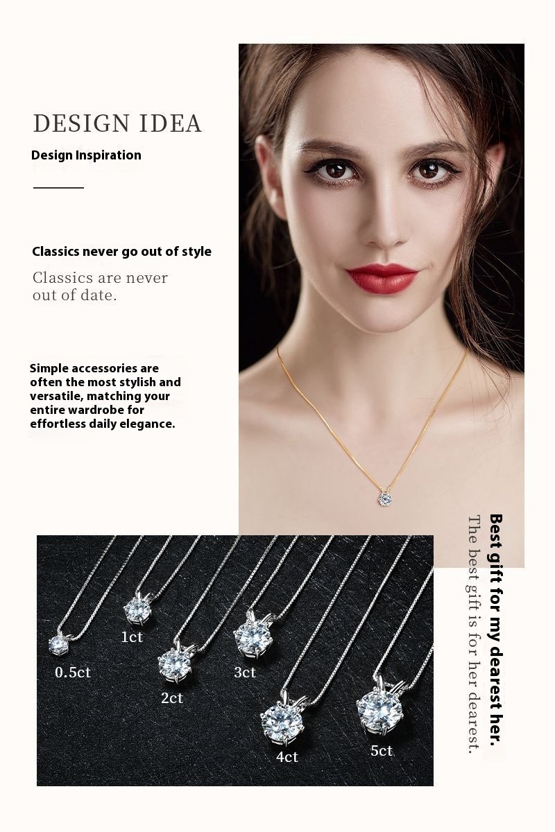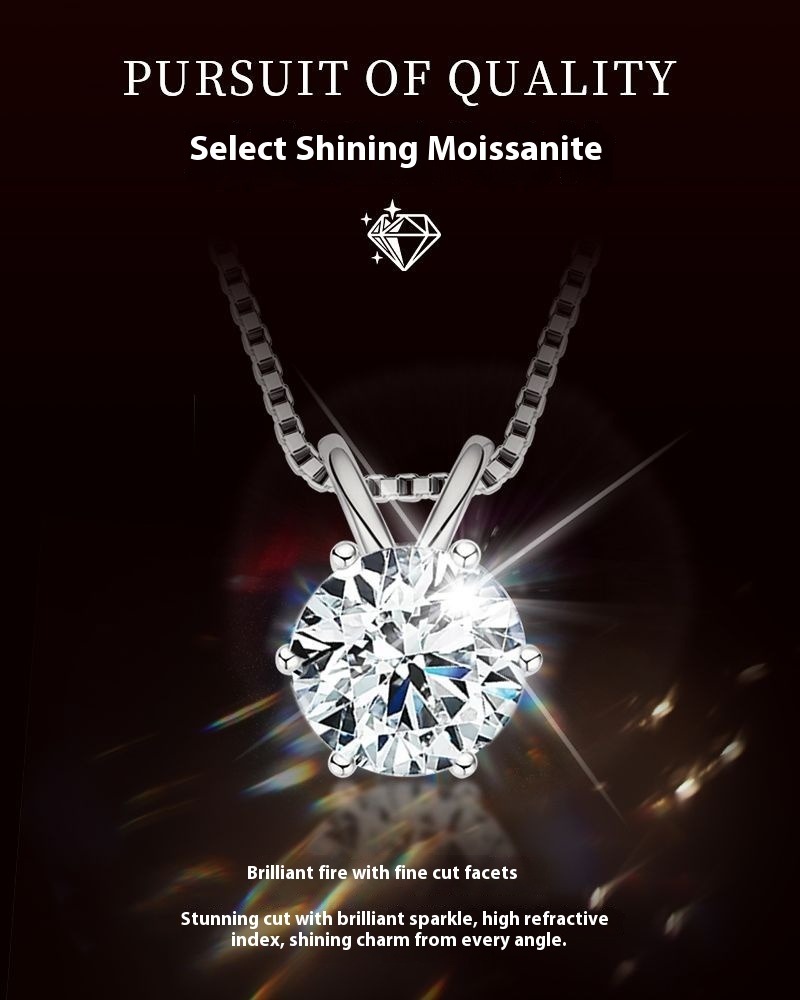 S925 Sterling Silver Six-Prong Moissanite Necklace - Classic Delicate Chain