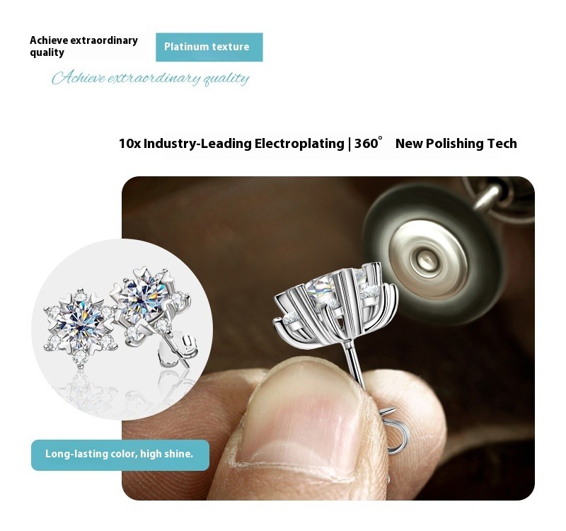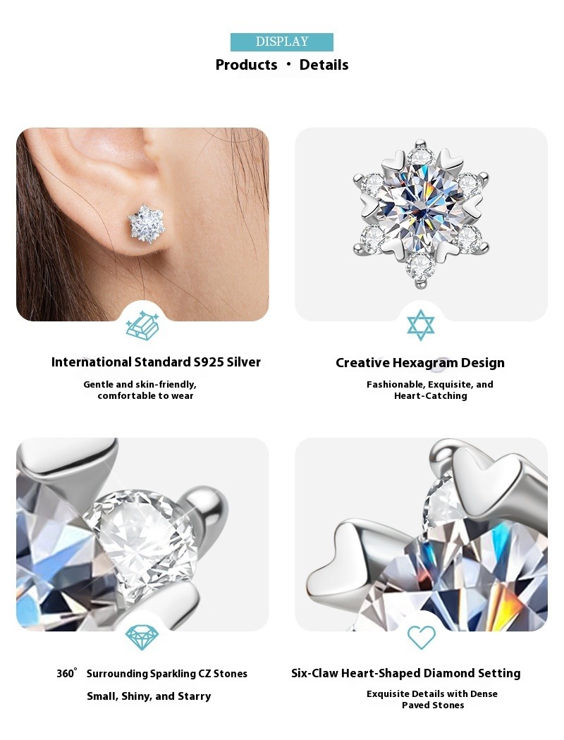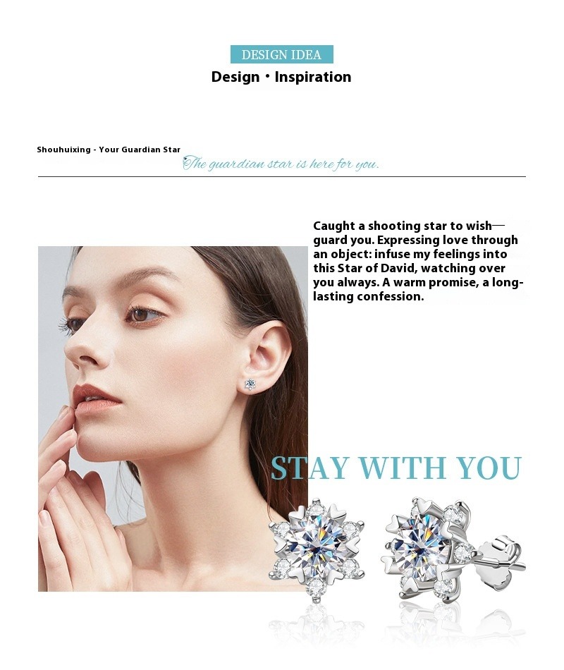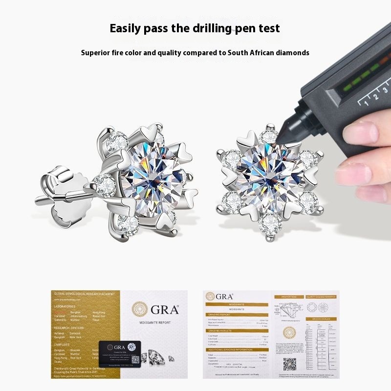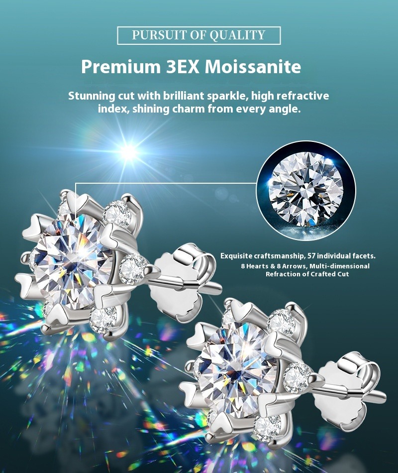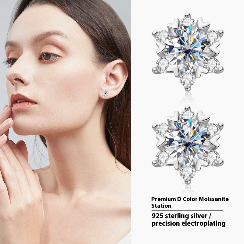 S925 Sterling Silver Snowflake Moissanite Earrings - Tarnish-Free Design