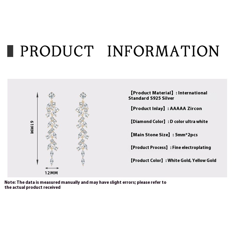 S925 Sterling Silver Sparkling Zircon Tassel Earrings - Elegant Drop Fringe Earrings
