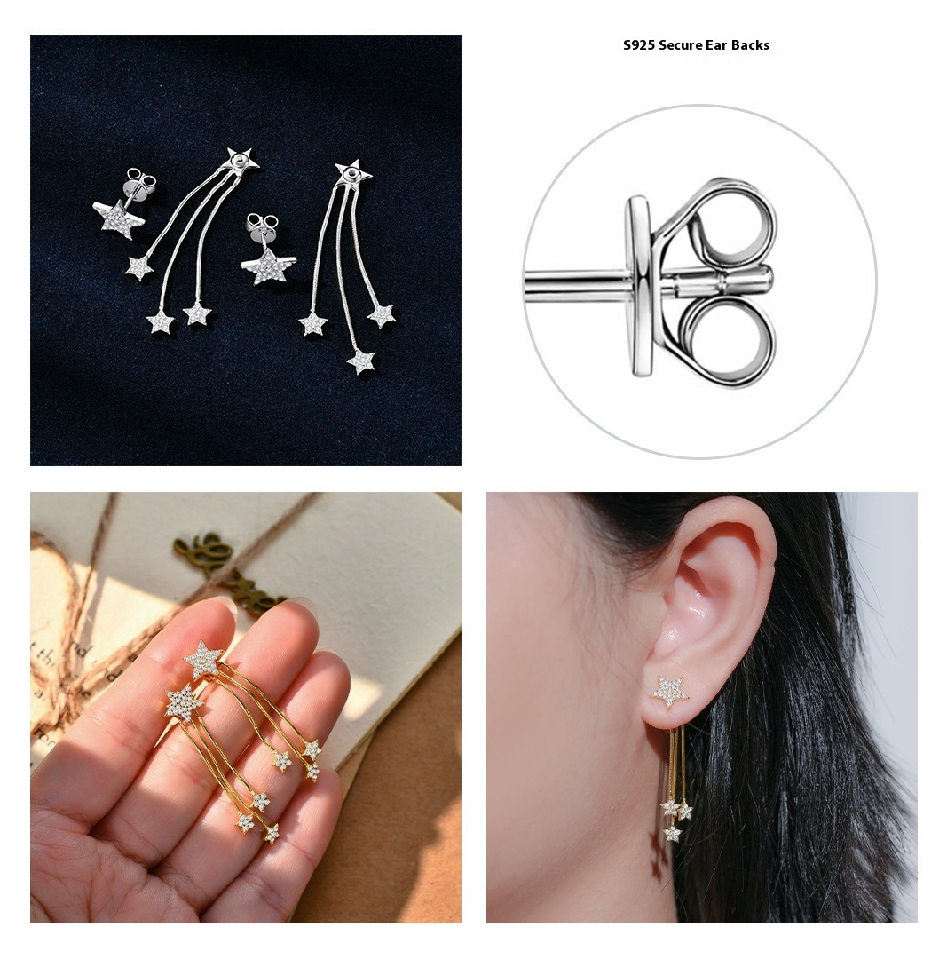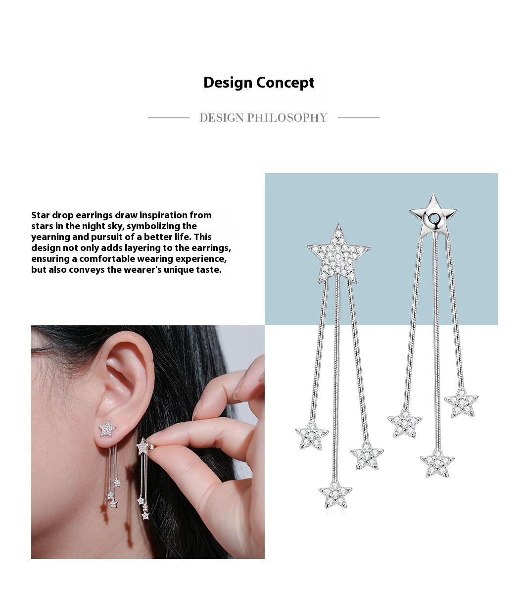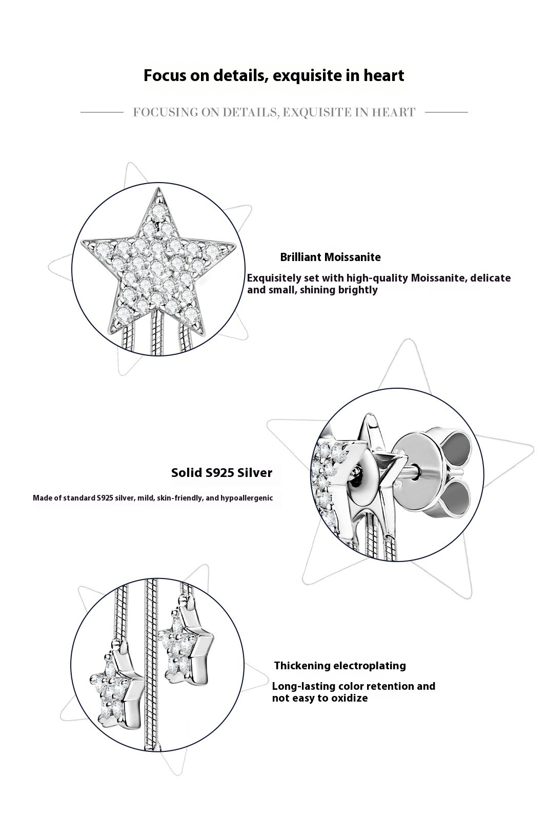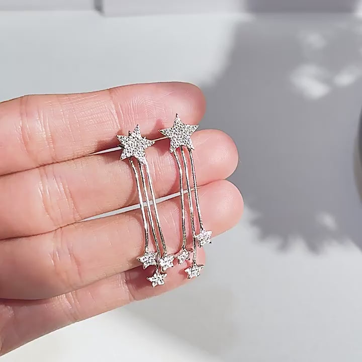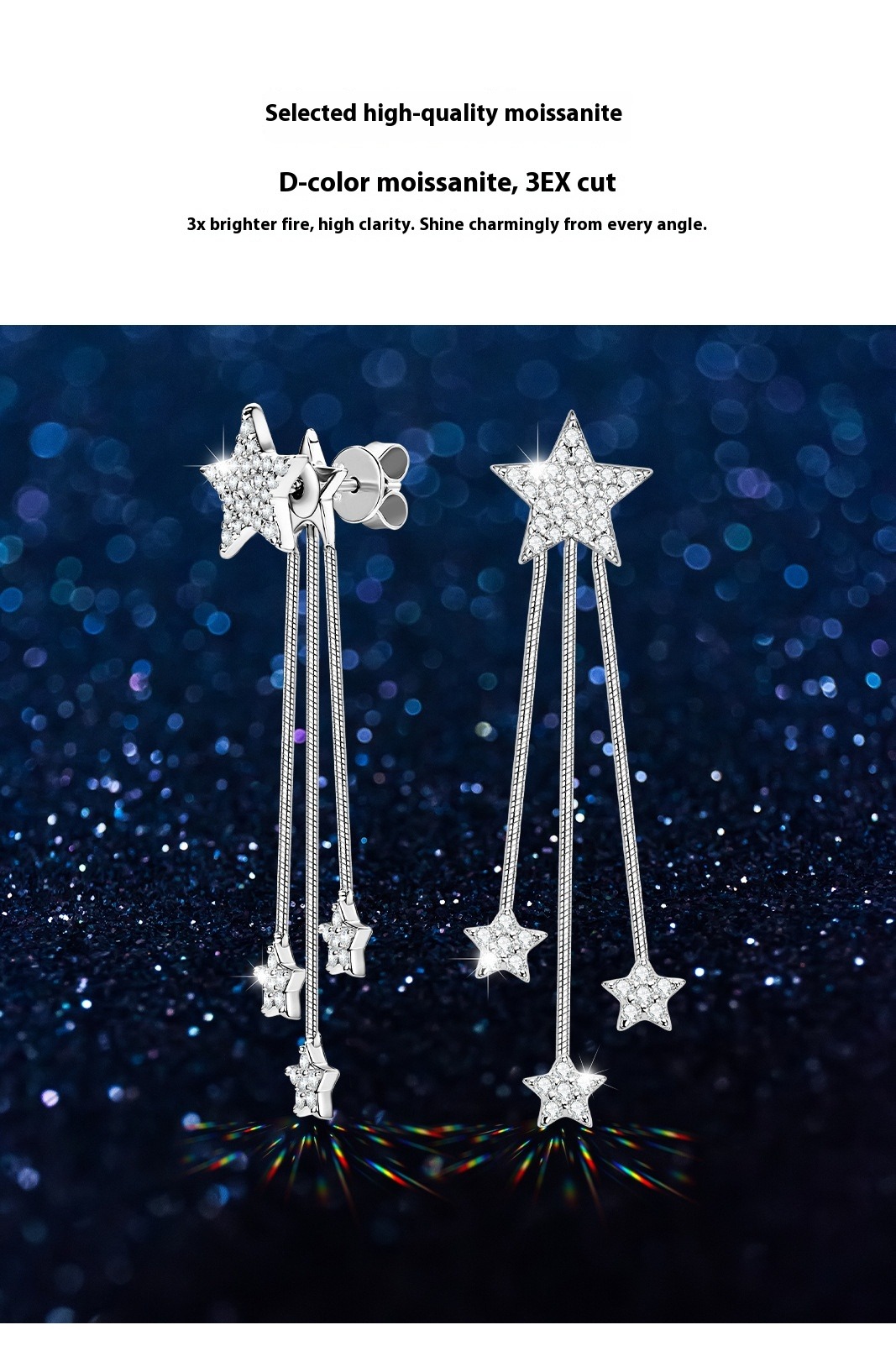 S925 Sterling Silver Star Fringe Moissanite Drop Earrings - Sparkling Luxury Design