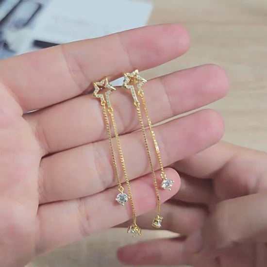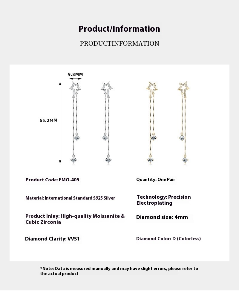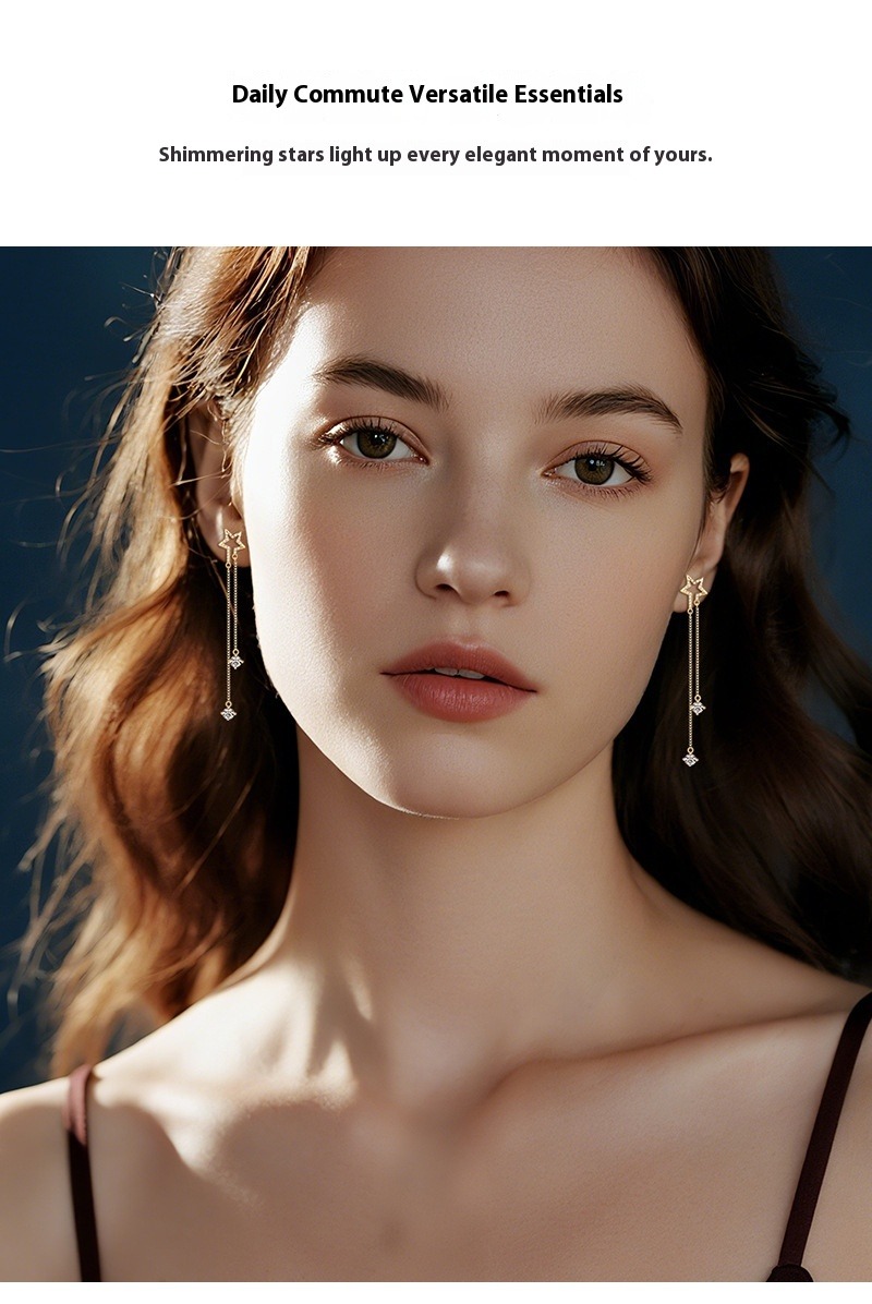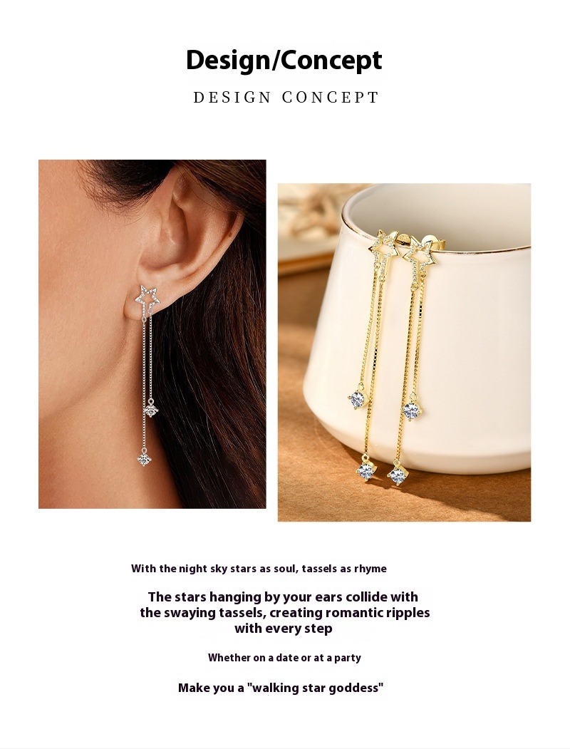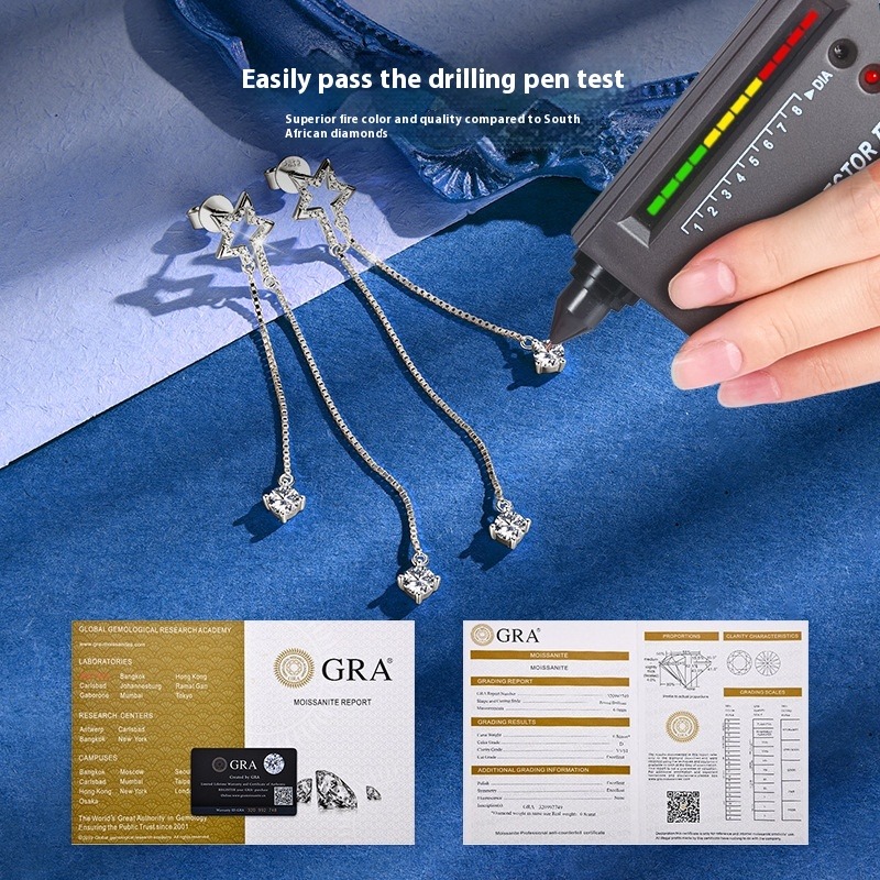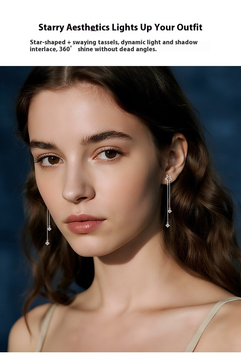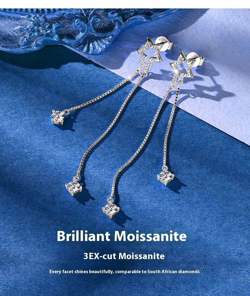 S925 Sterling Silver Star Fringe Moissanite Earrings - Drop Earrings