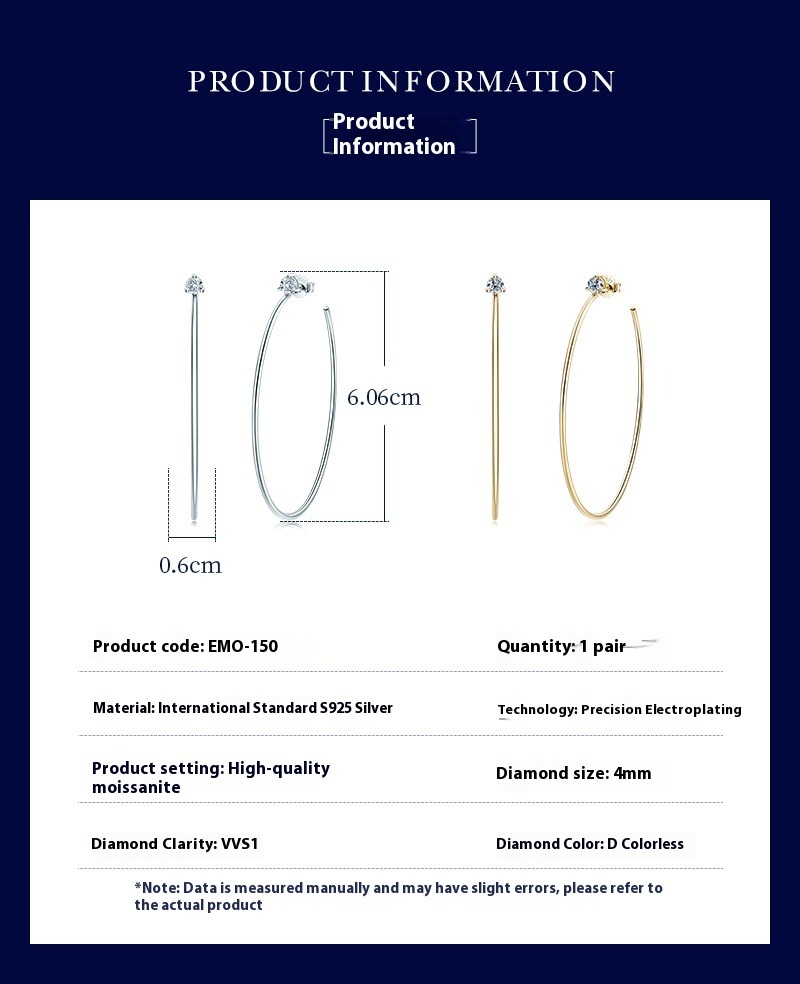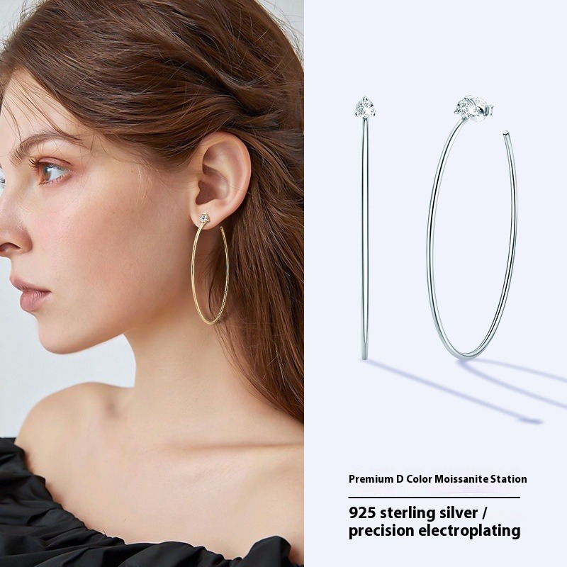 S925 Sterling Silver Statement Moissanite Earrings - Bold Tarnish-Free Design