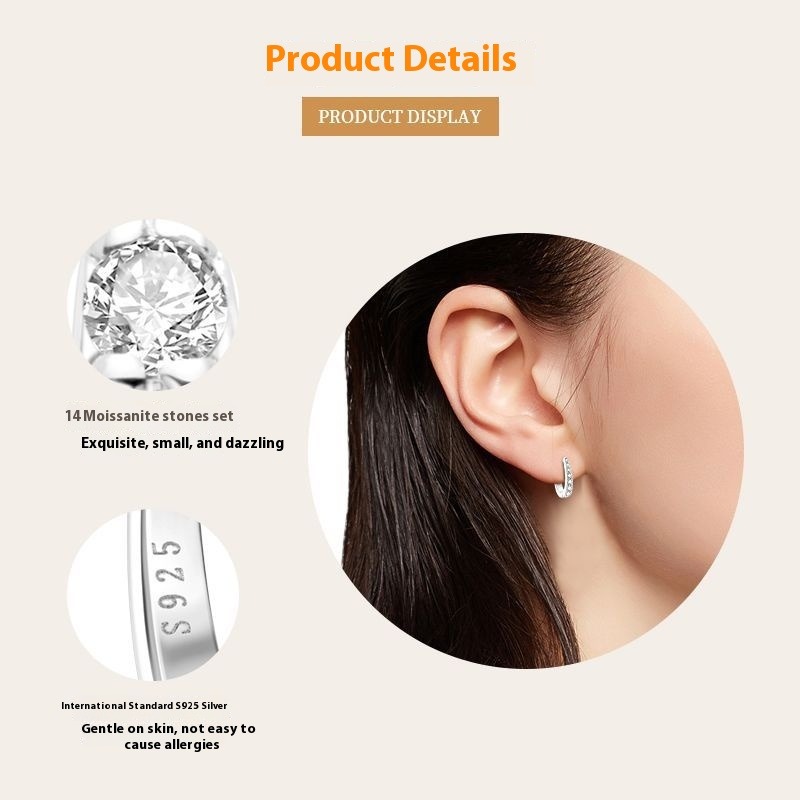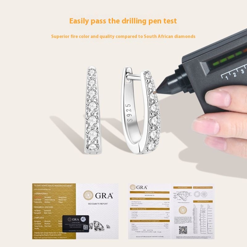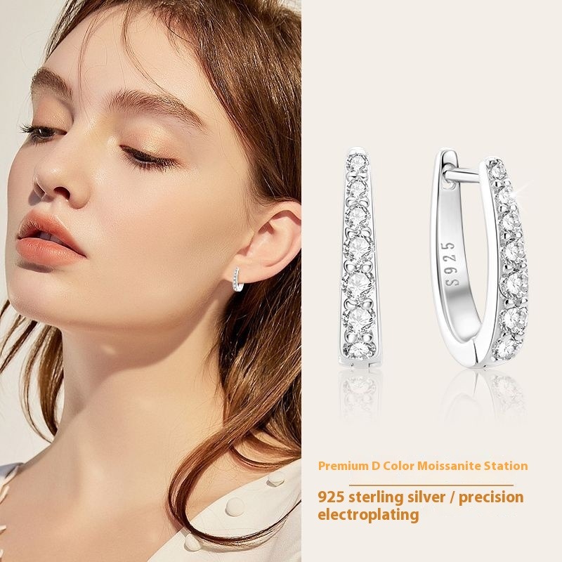 S925 Sterling Silver U-Shaped 0.3 Carat Moissanite Earrings - Versatile Style
