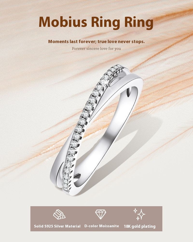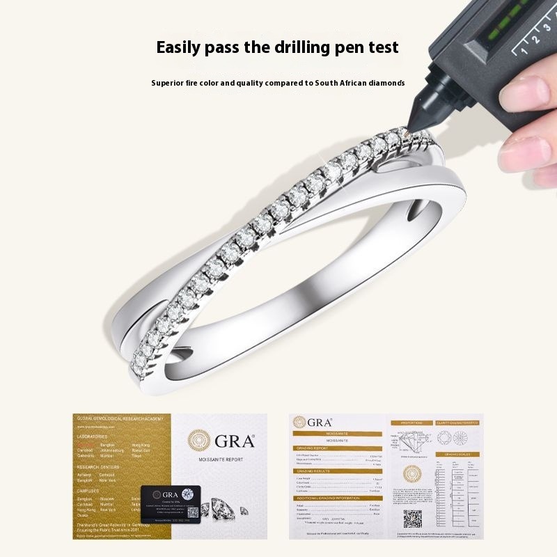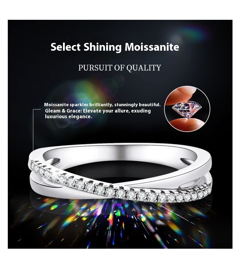 S925 Sterling Silver X-Shaped Cross Moissanite Ring - Tail Ring