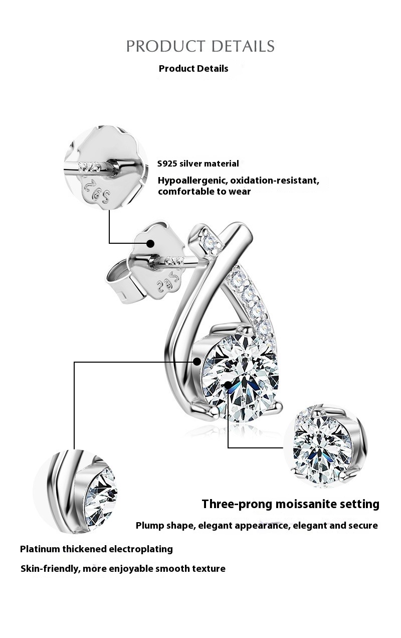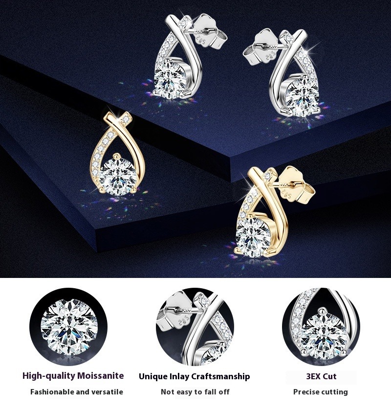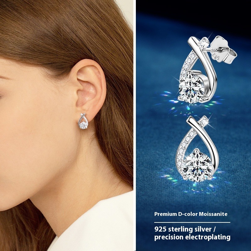 S925 Sterling Silver X-Shaped Moissanite Earrings - Luxury Fishtail Design