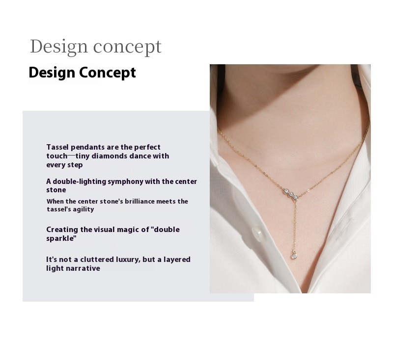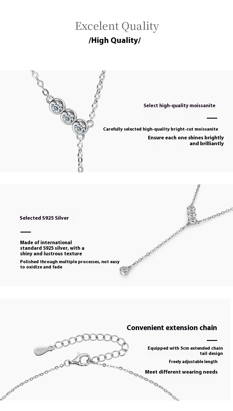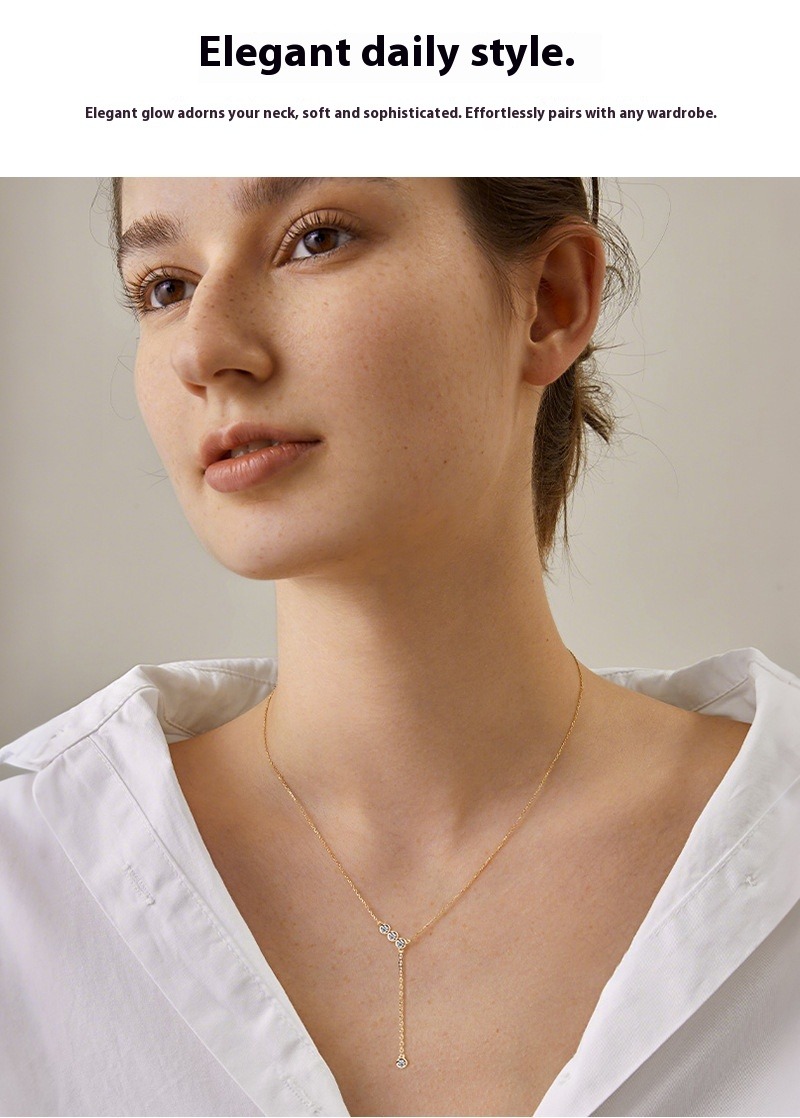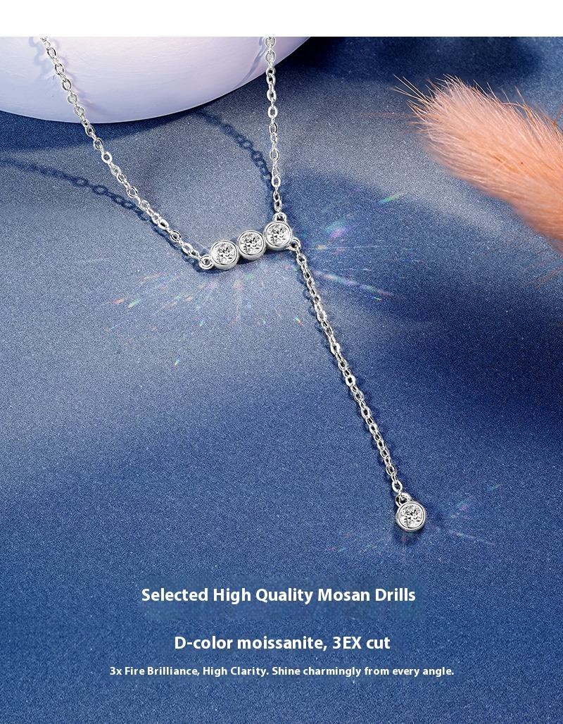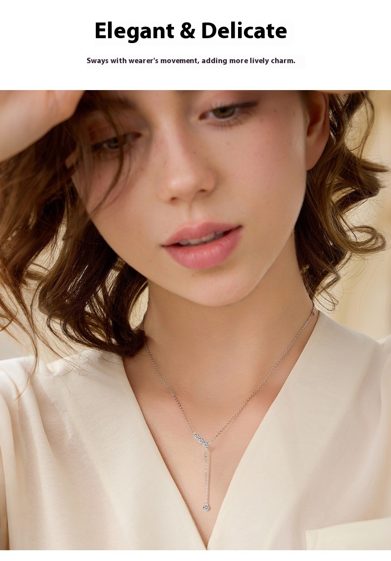 S925 Sterling Silver Y-Chain Necklace - Moissanite Tassel Lariat Necklace