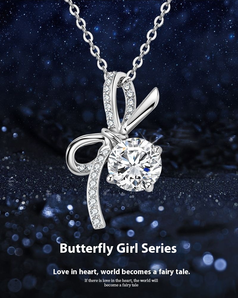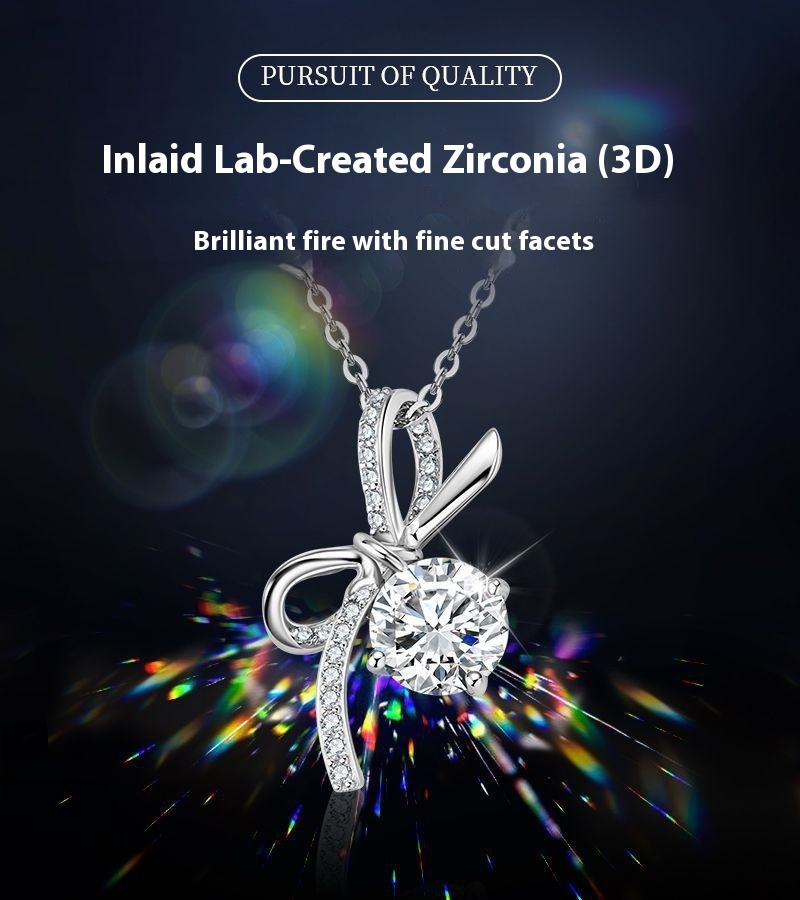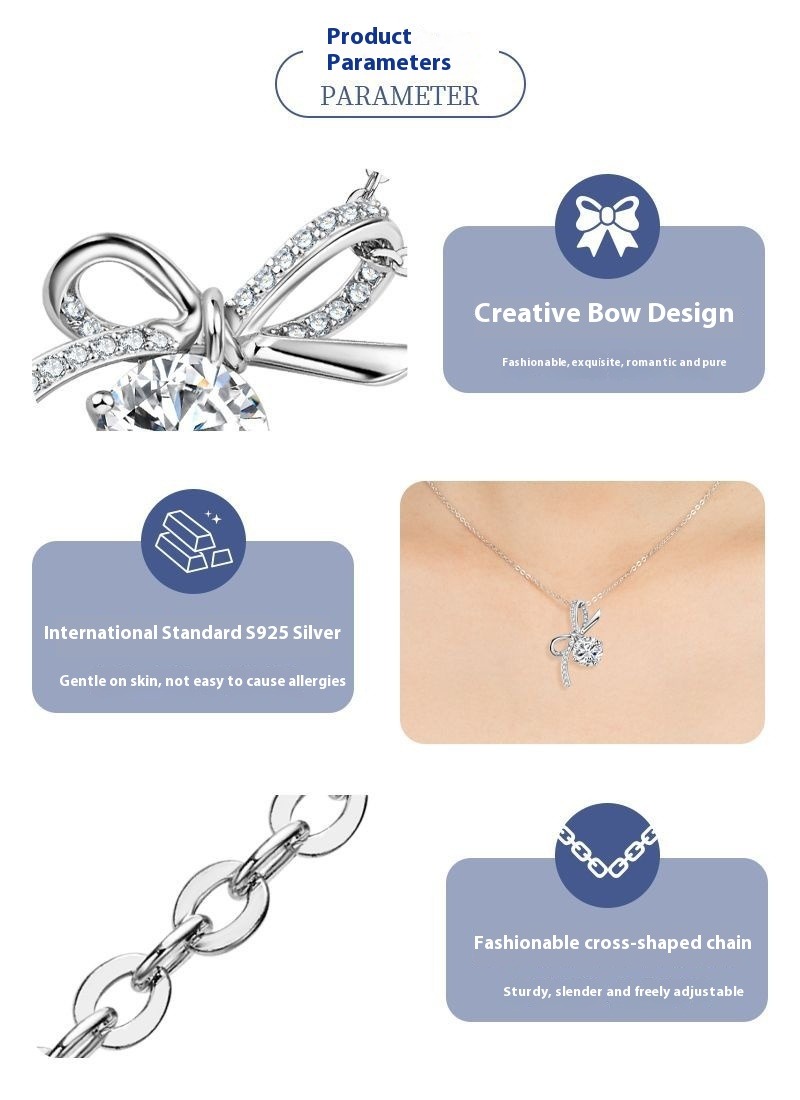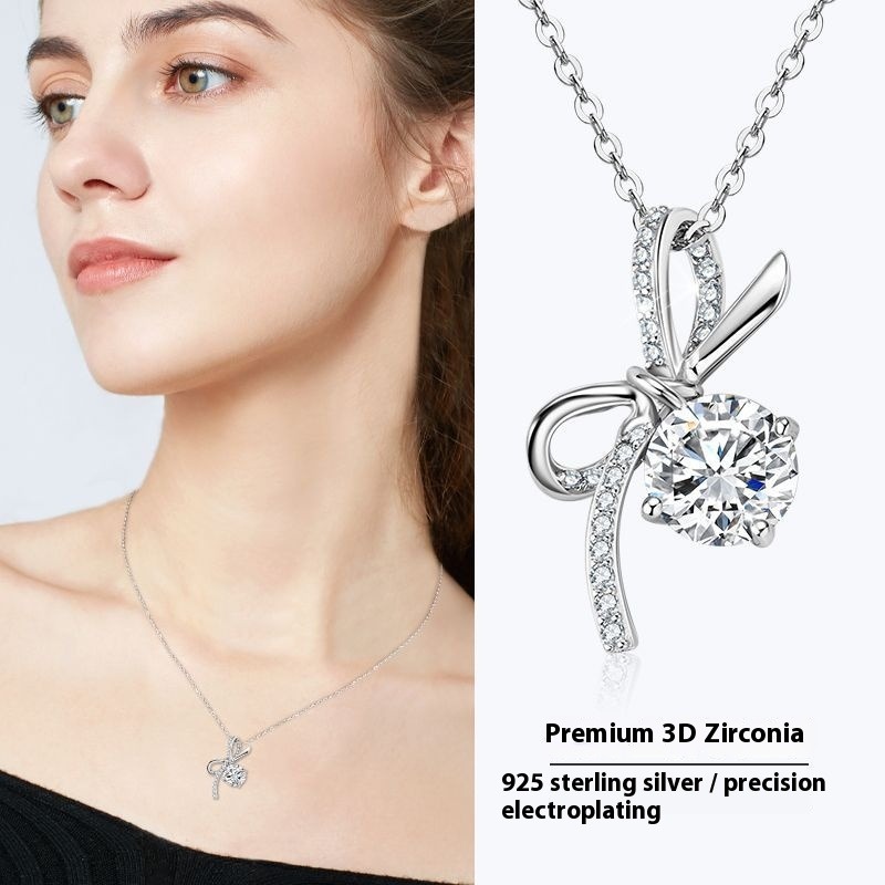 Zircon Bow Collarbone Necklace - S925 Sterling Silver Delicate Chain for Women
