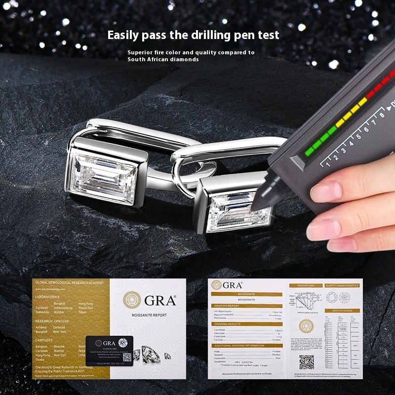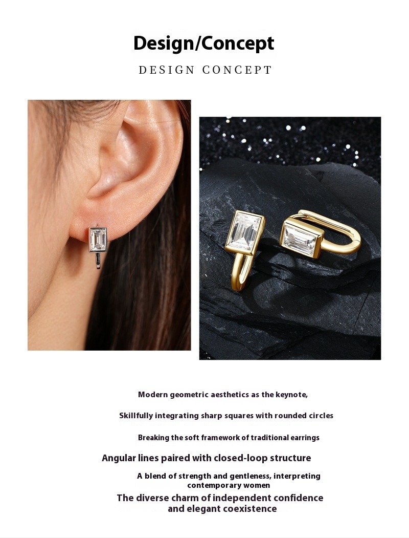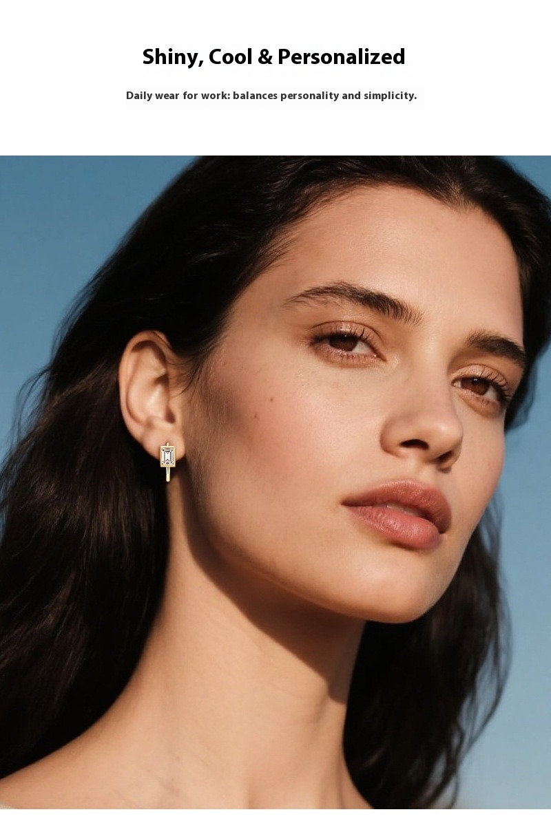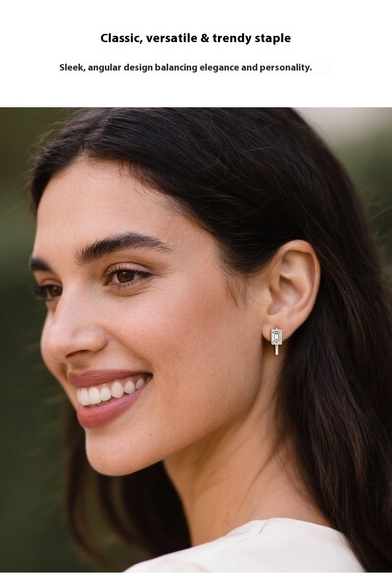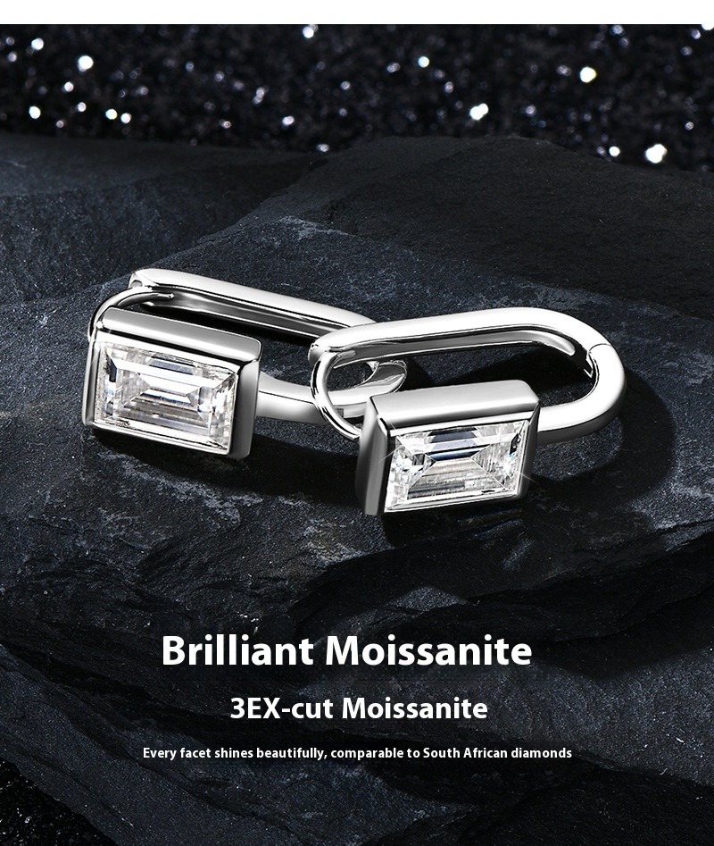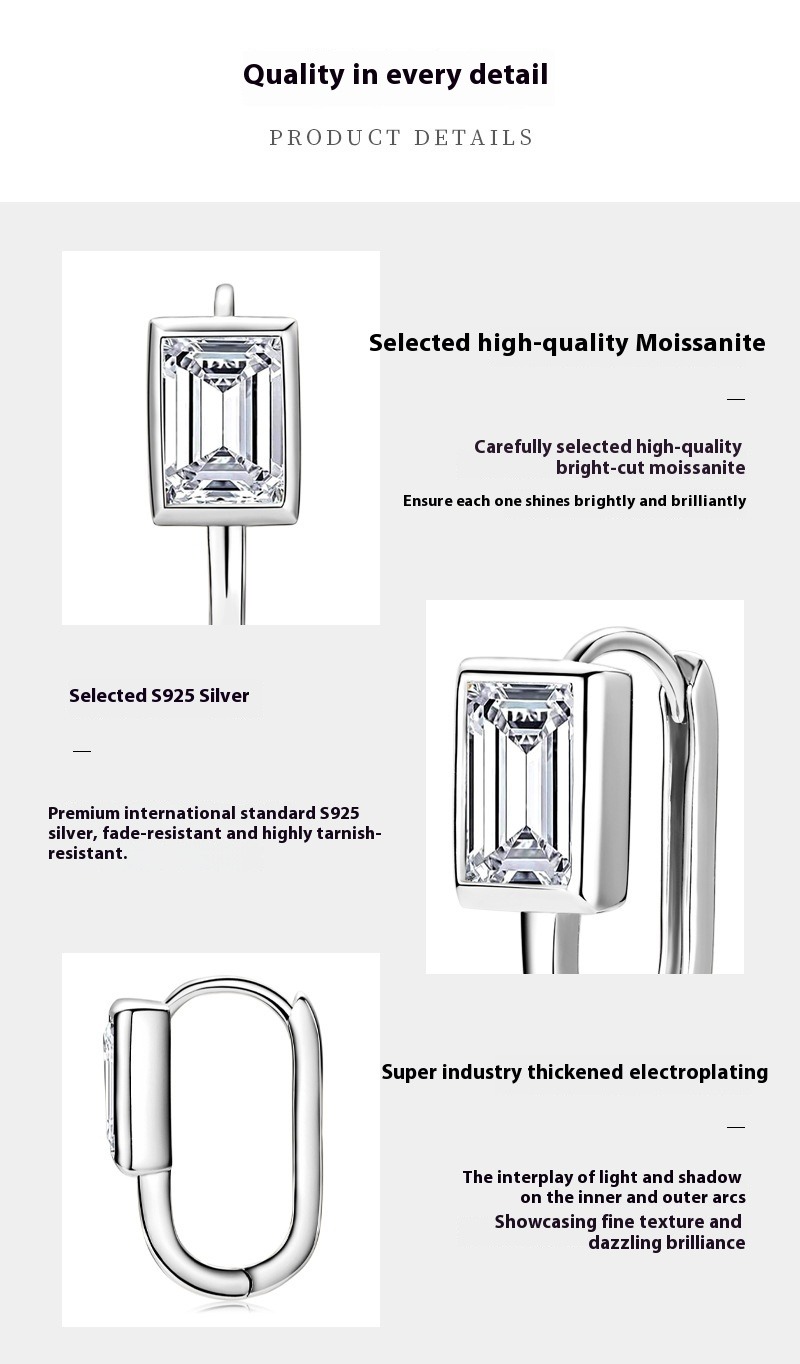 D-Color Moissanite U-Shaped Earrings - S925 Silver Rectangular Geometric Studs