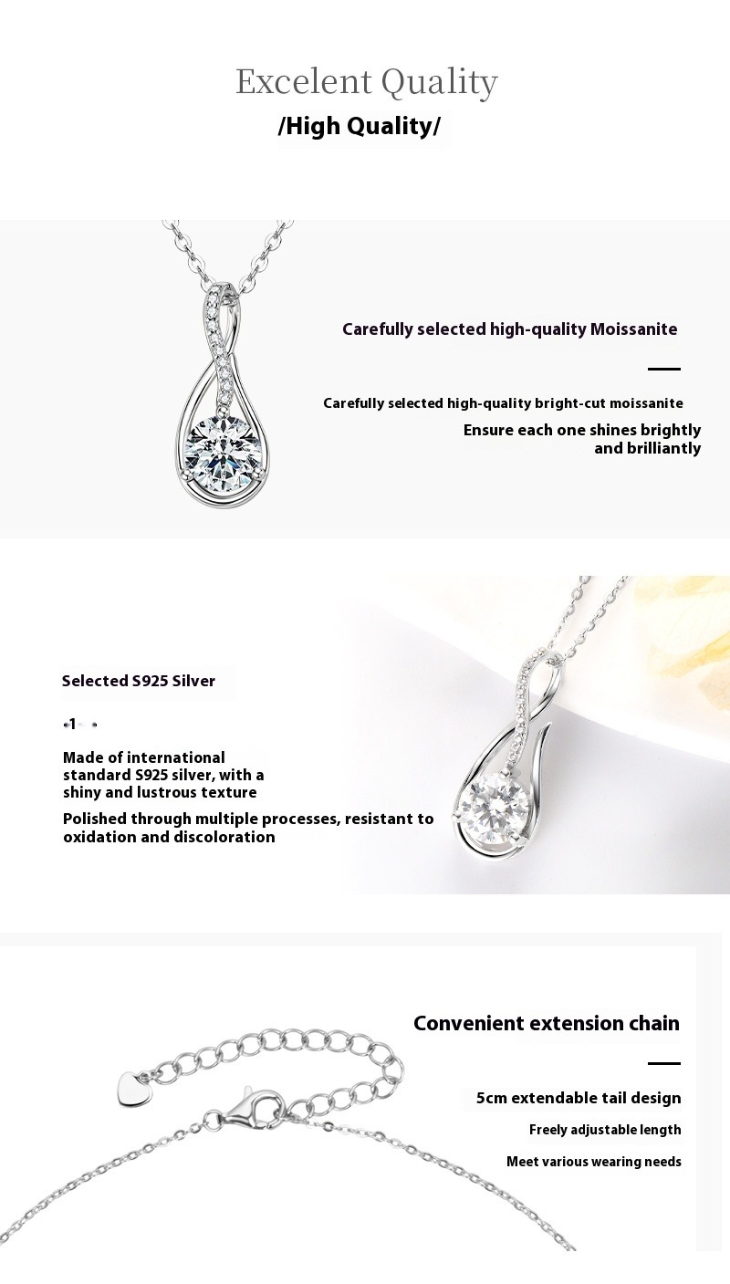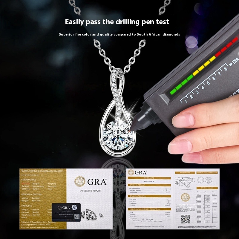 2 Carat Eight Hearts Eight Arrows Water Drop Pendant - S925 Silver Diamond Necklace