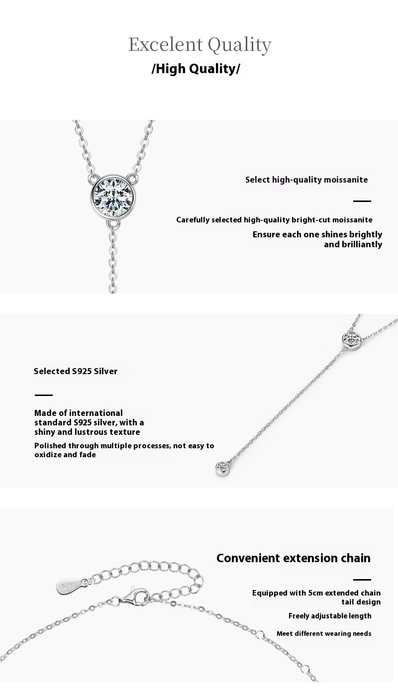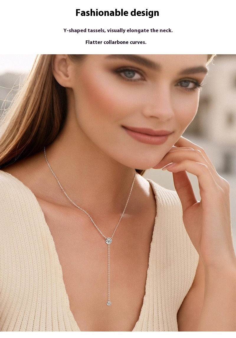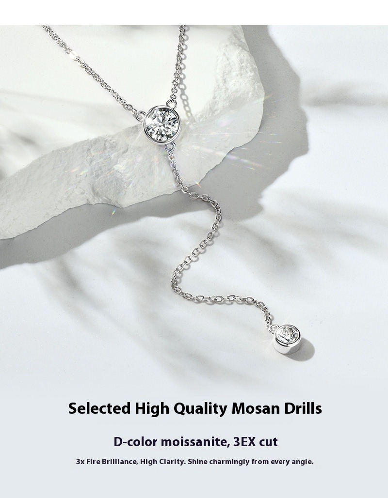 Y-Chain Moissanite Fringe Necklace - S925 Sterling Silver High-End Collarbone Chain