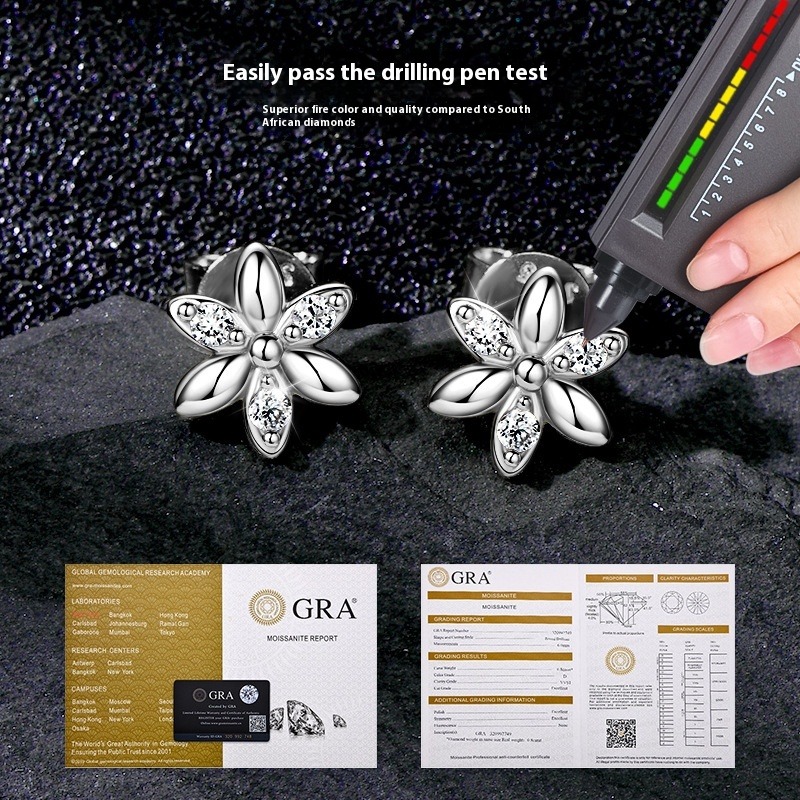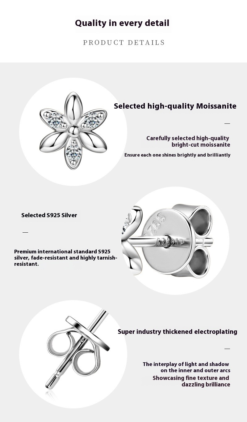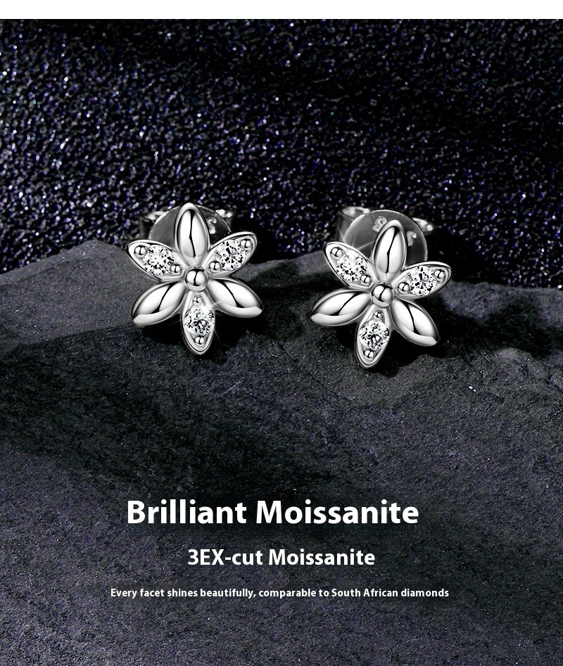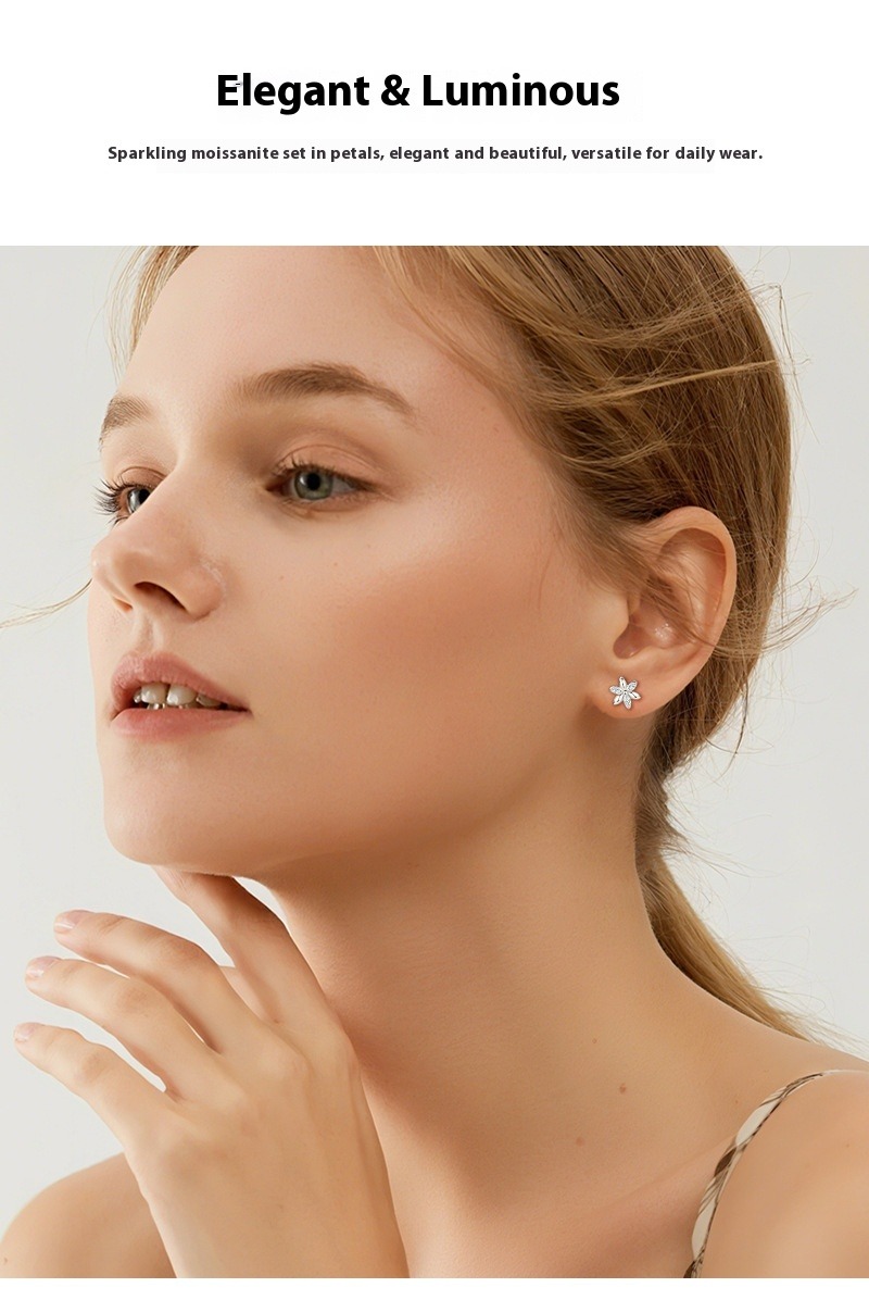 Mini Flower Moissanite Stud Earrings - S925 Sterling Silver Delicate Summer Jewelry