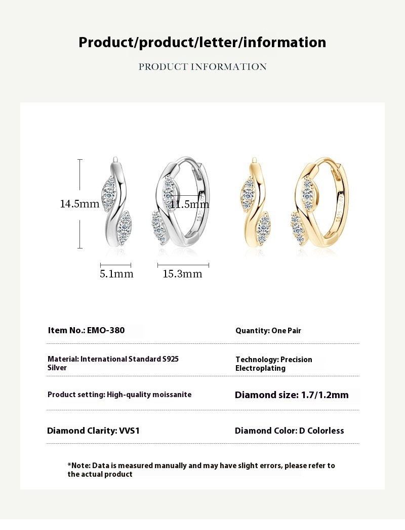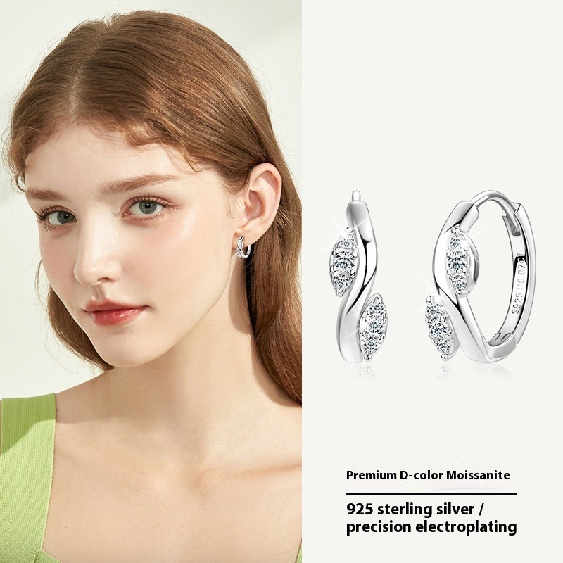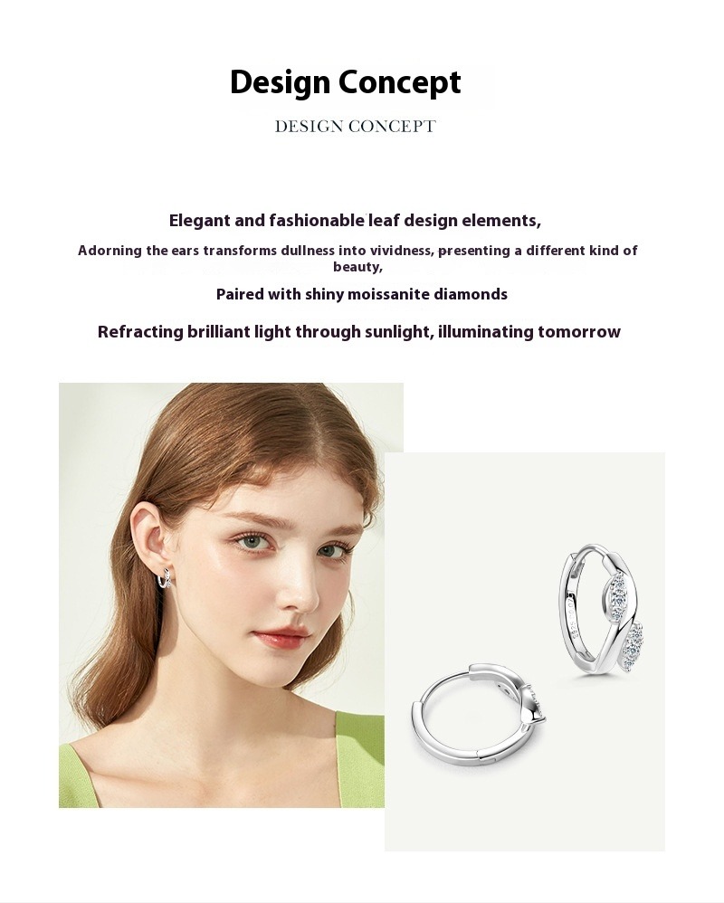 Moissanite Leaf Earrings - S925 Sterling Silver Diamond Drop Earrings for Women