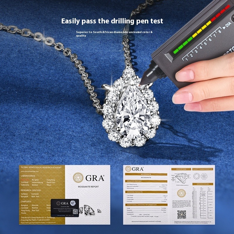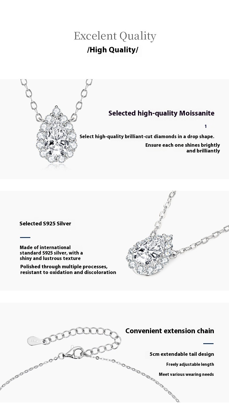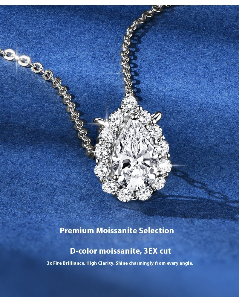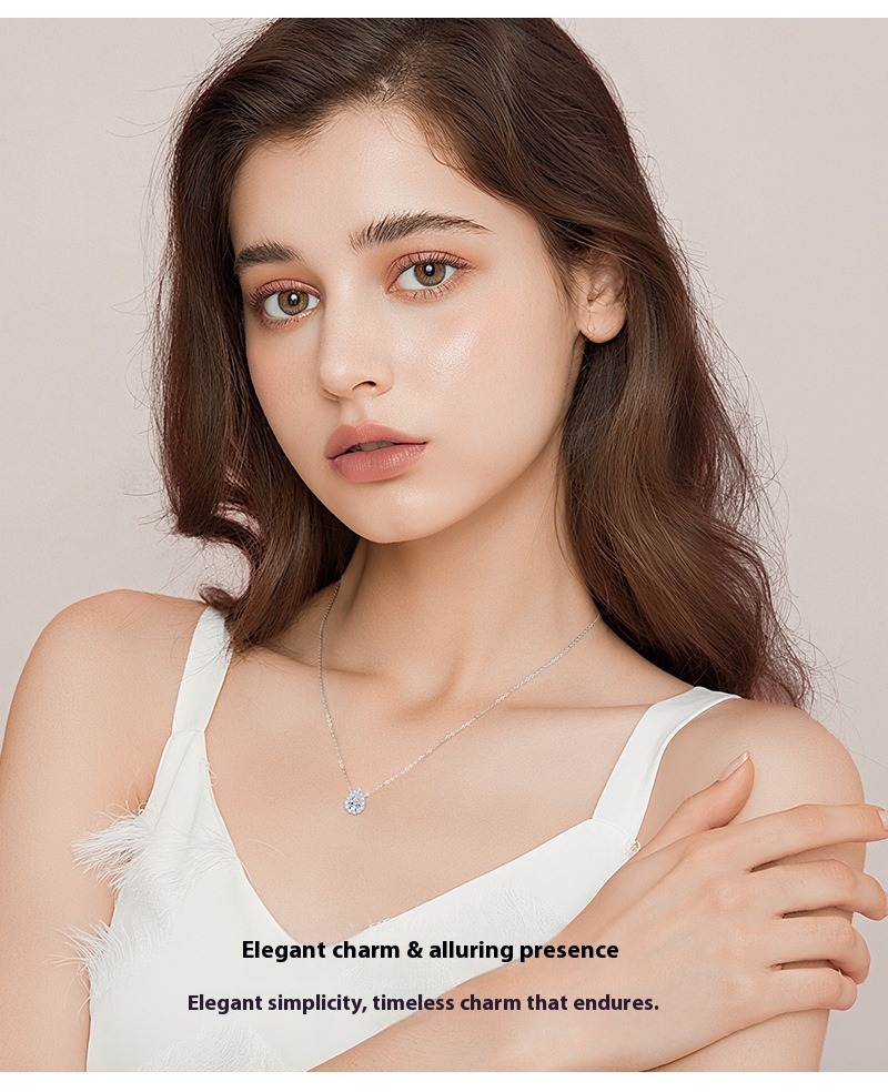 S925 Sterling Silver 1 Carat Round Moissanite Collarbone Necklace - Classic Pendant