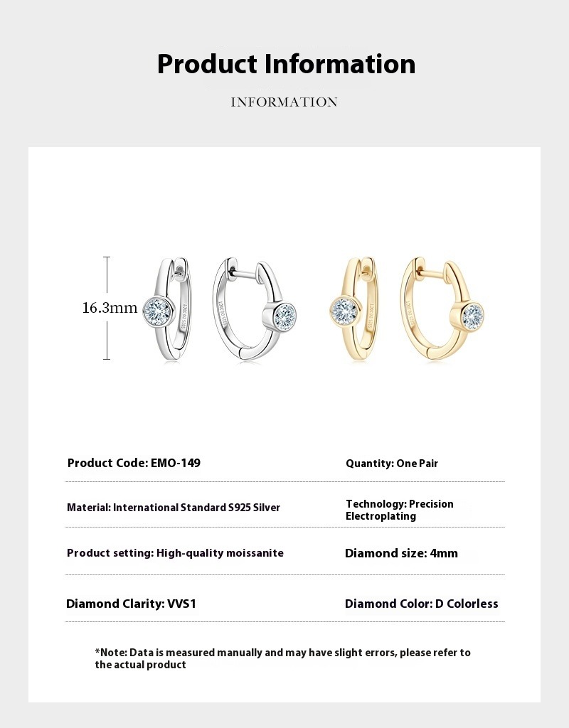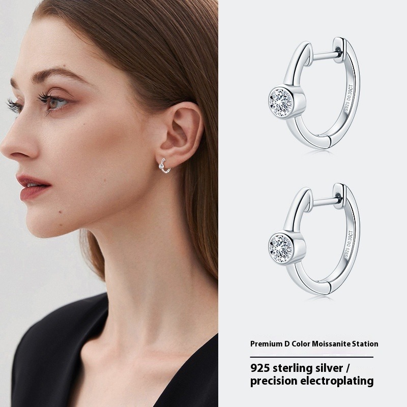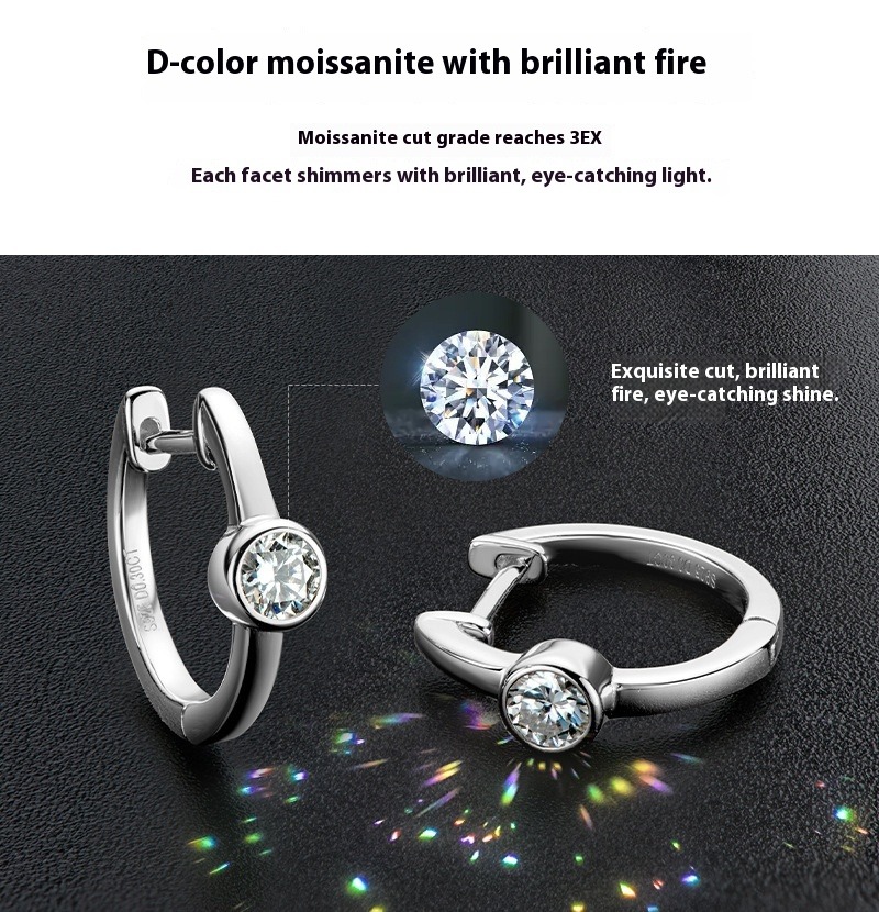S925 Sterling Silver 18K Gold Plated Moissanite Earrings - Minimalist Geometric Design
