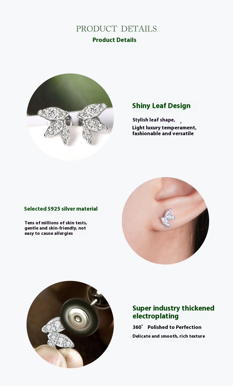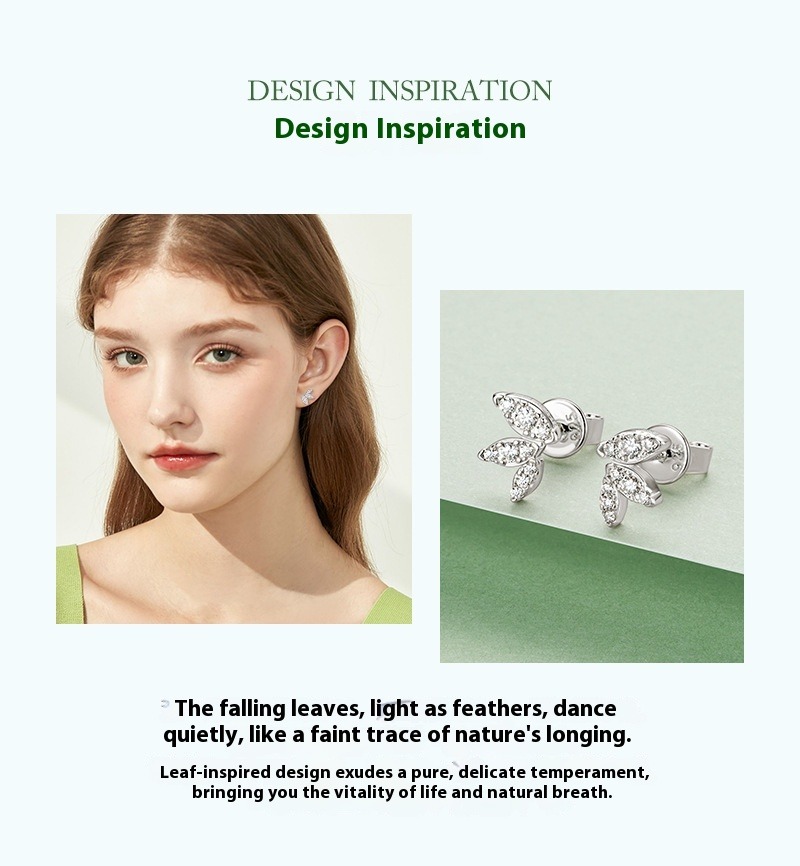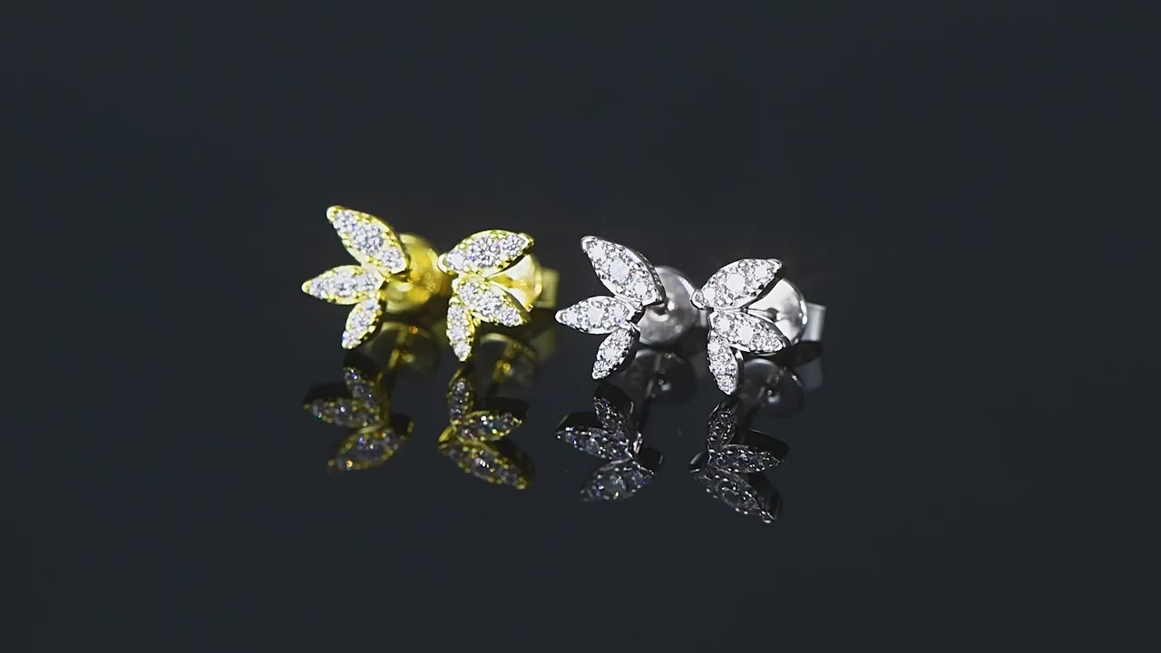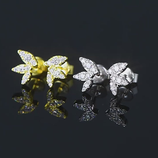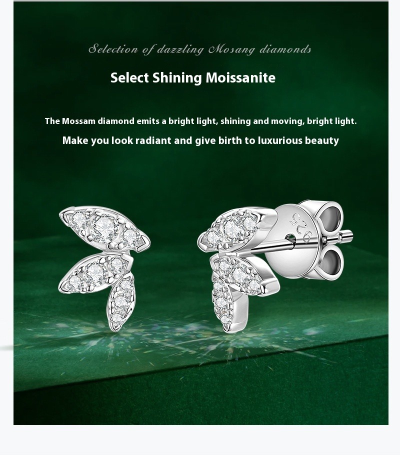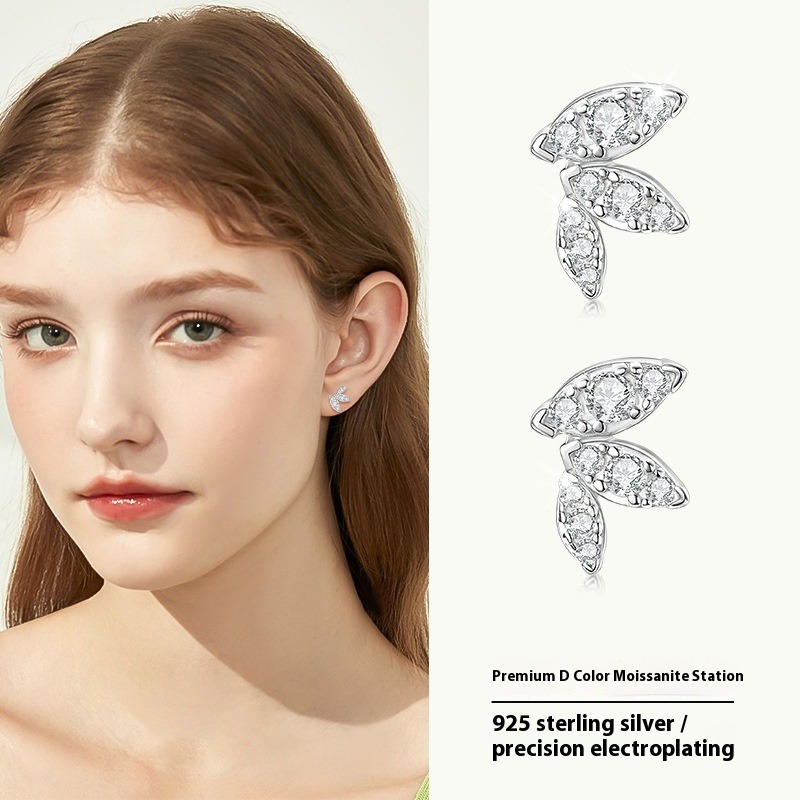 S925 Sterling Silver Butterfly Wing Moissanite Stud Earrings - Delicate Leaf Design