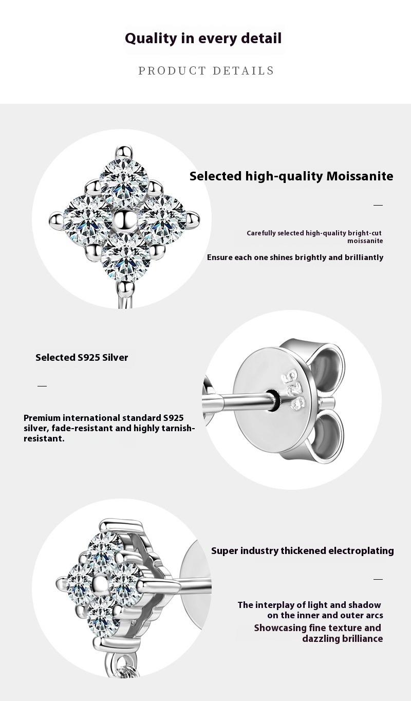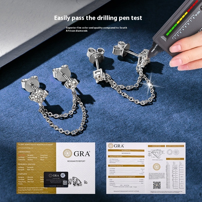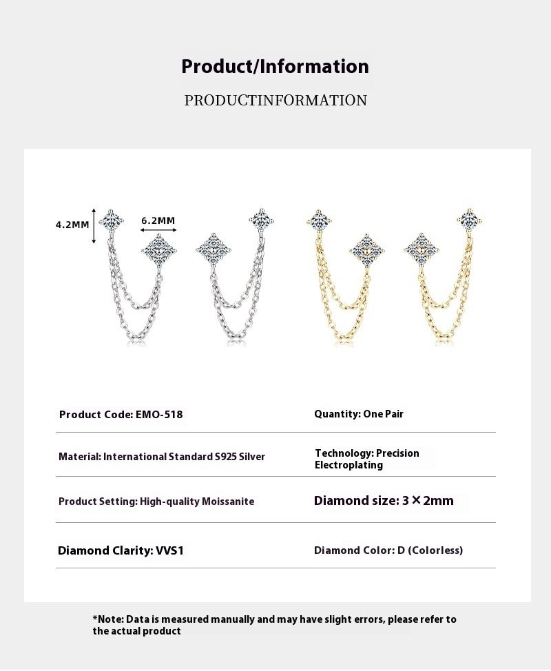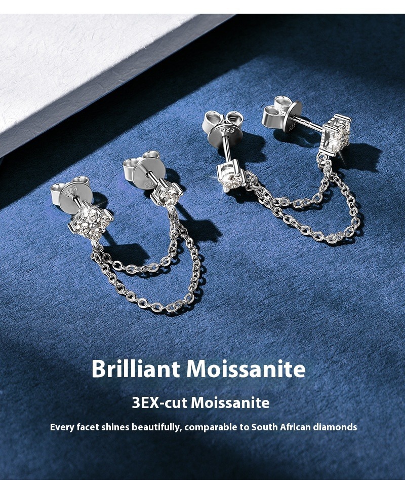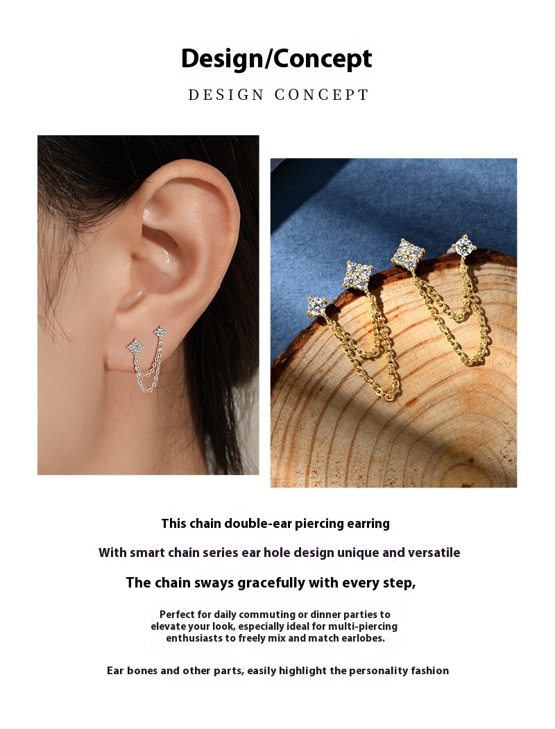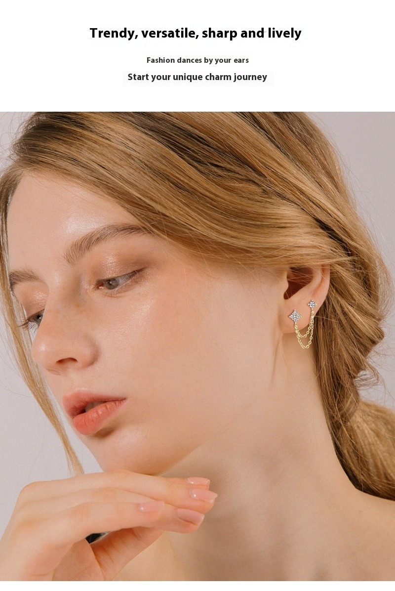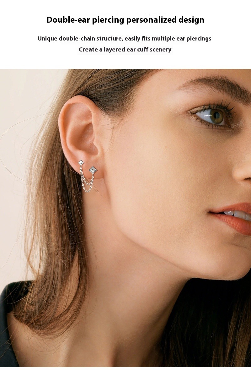 S925 Sterling Silver Clover Chain Fringe Earrings - Double Piercing Design