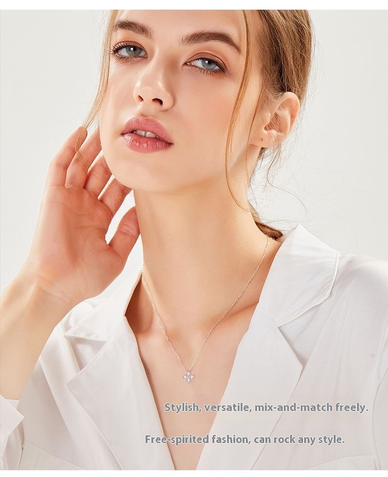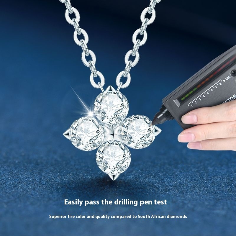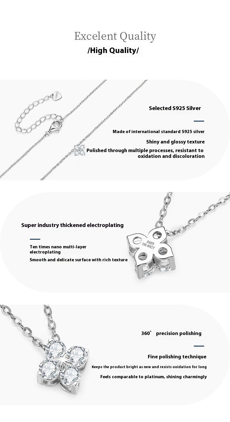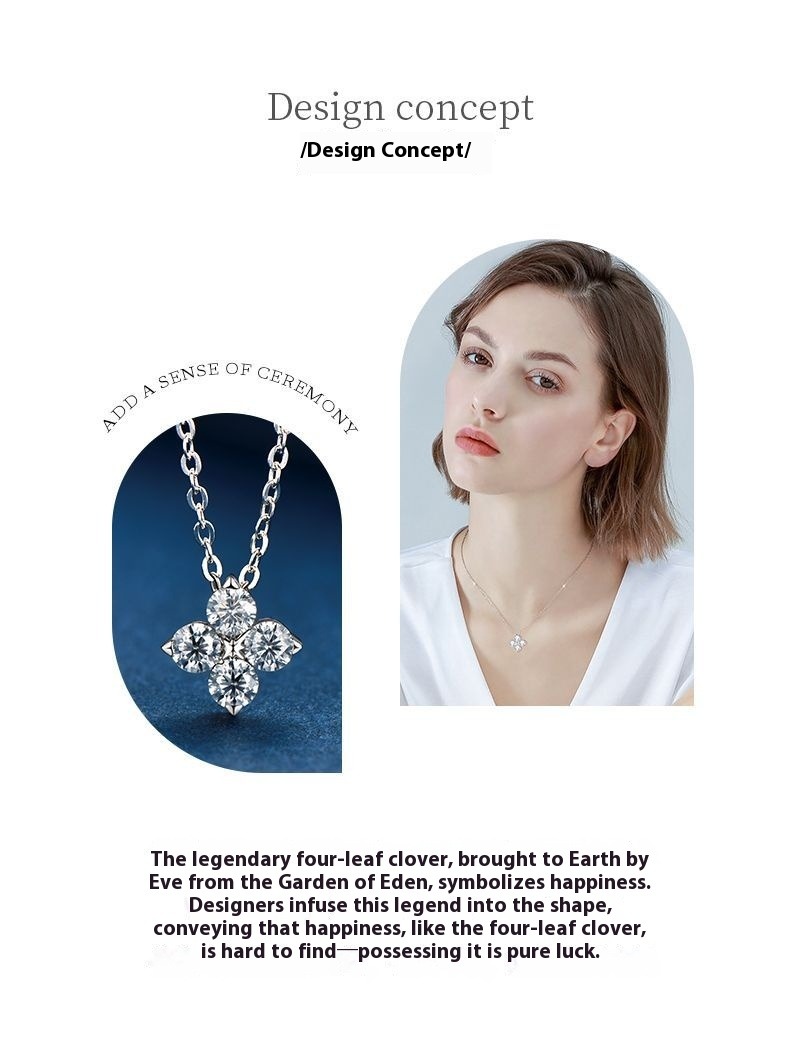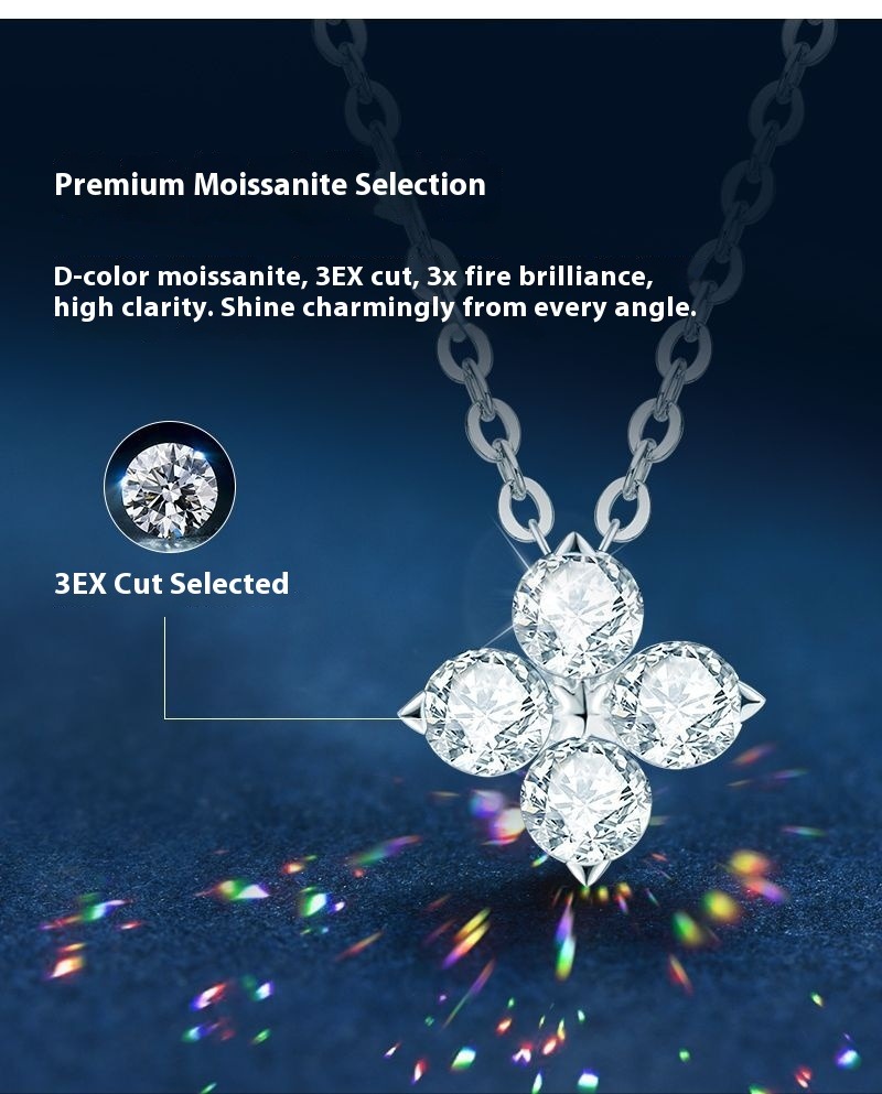 S925 Sterling Silver D Color Moissanite Four-Leaf Clover Necklace - 18K Gold Plated Lucky Pendant