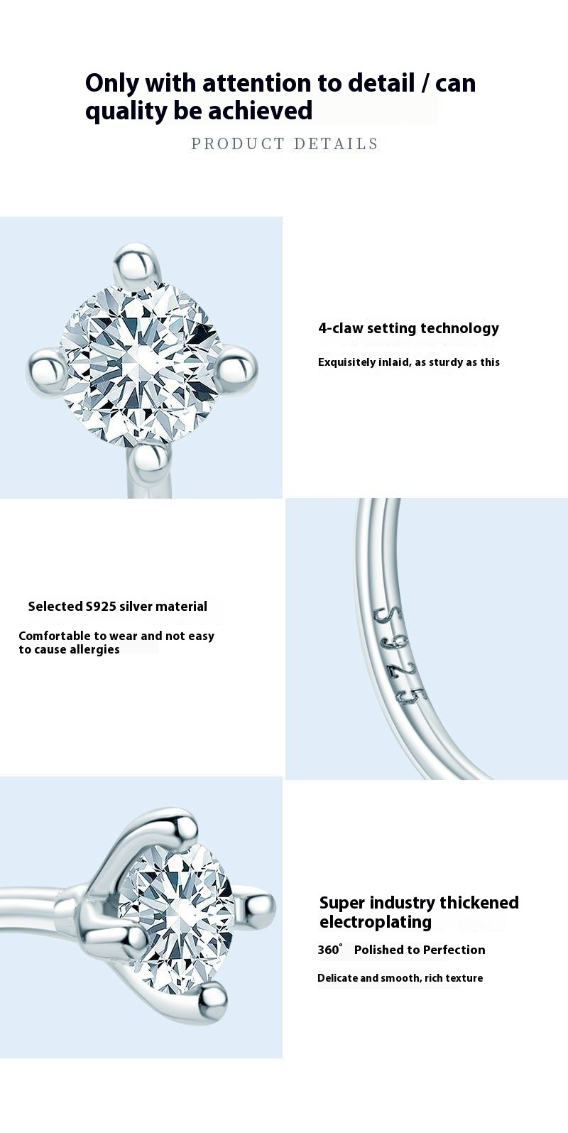 S925 Sterling Silver D Color Moissanite Four Prong Stud Earrings - Classic Setting