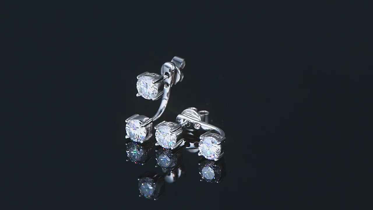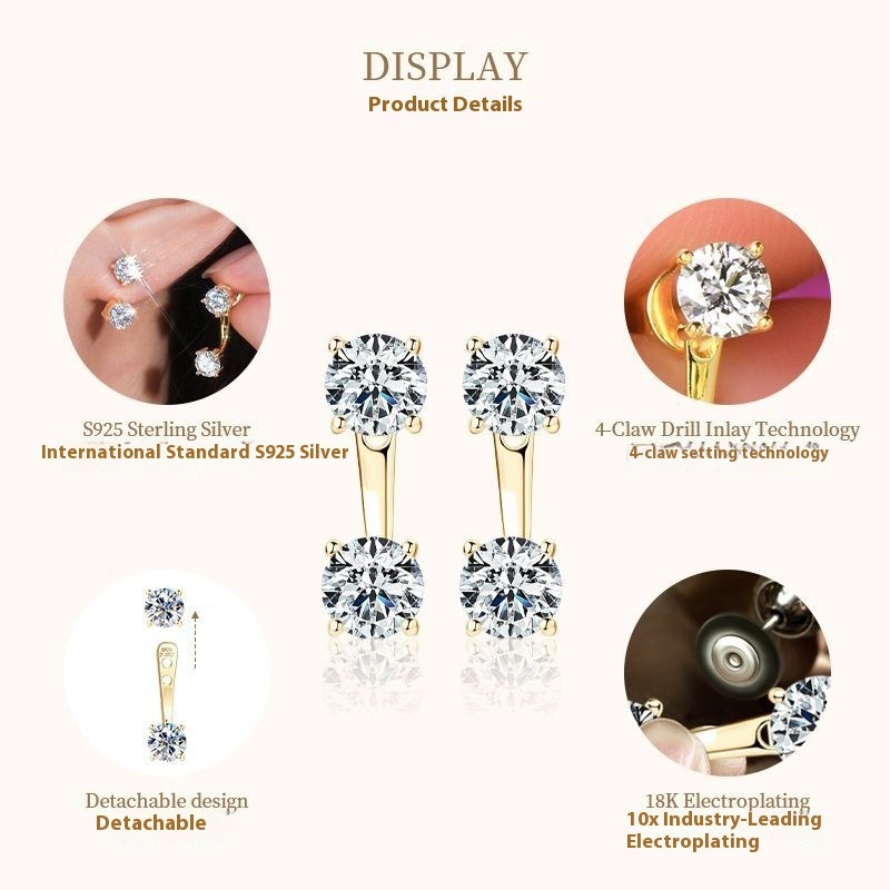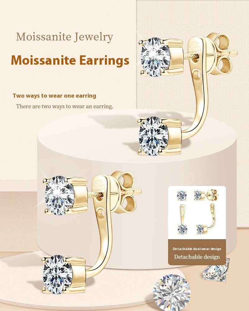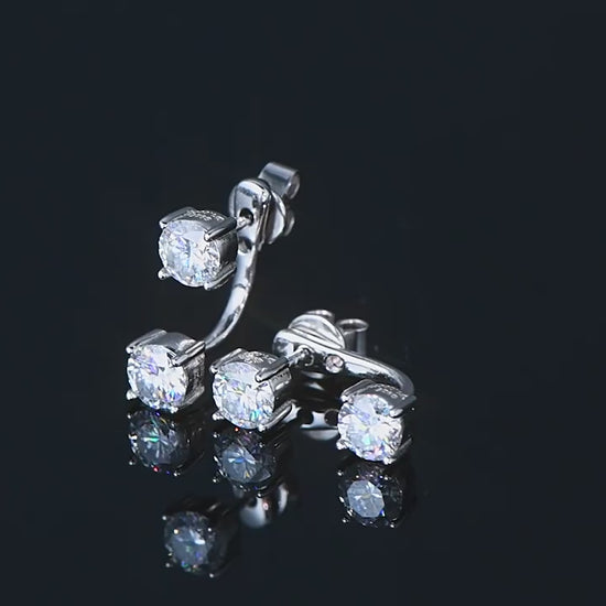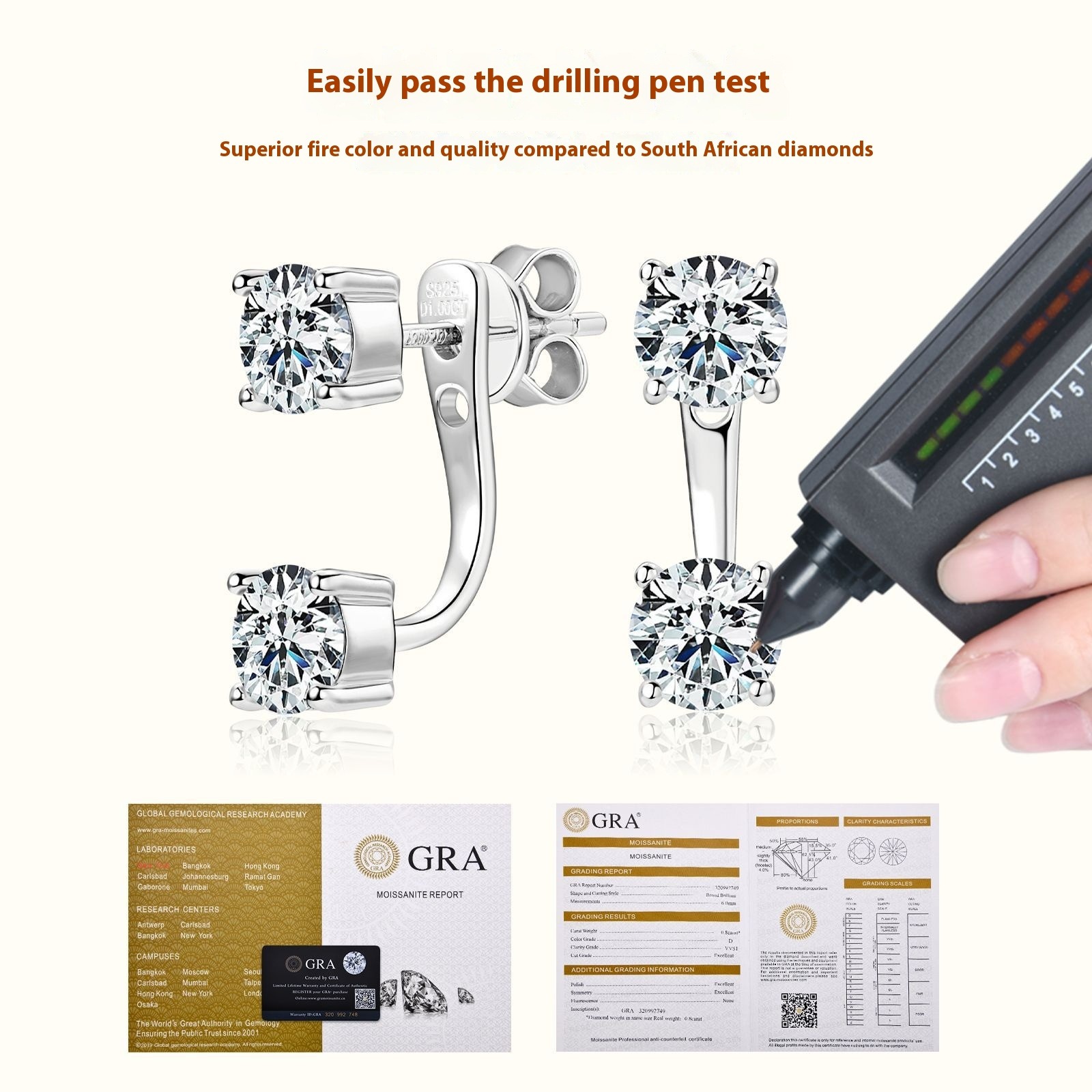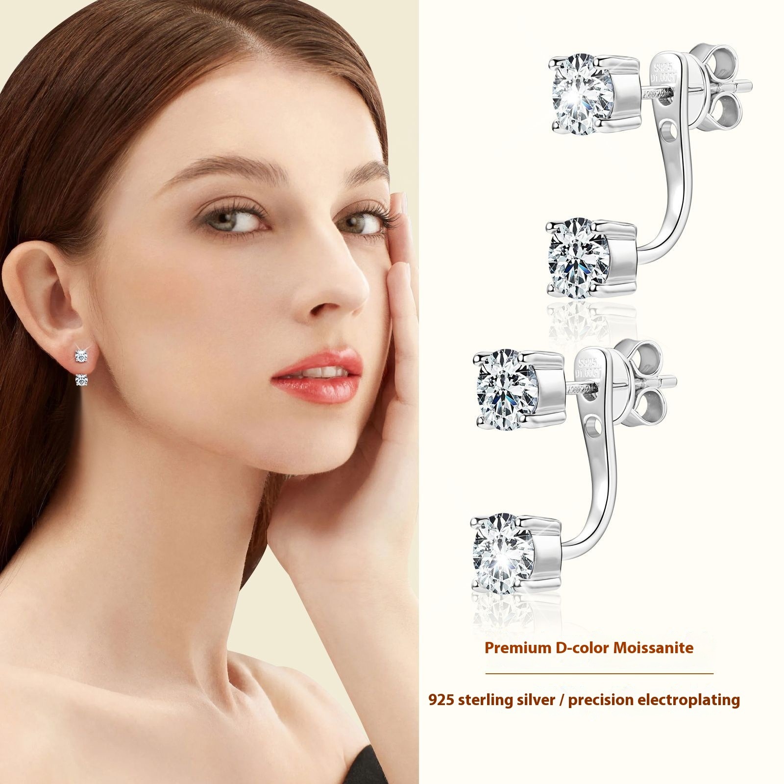 S925 Sterling Silver Double Wear Moissanite Stud Earrings - Front Back Design